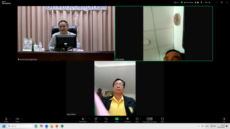 วันที่ 16 ธันวาคม พ.ศ. 2567 เวลา 10.00 น. ผู้ช่วยศาสตราจารย์ชาคริต ชาญชิตปรีชา อธิการบดีมหาวิทยาลัยราชภัฏสกลนคร เป็นประธานการประชุมคณะกรรมการบริหารงบประมาณและการเงิน ครั้งที่ 7/2567 ผ่านสื่ออิเล็กทรอนิกส์ ระบบ Zoom Meeting ณ ห้องประชุมสรัสจันทร ชั้น 2 อาคาร 10 มหาวิทยาลัยราชภัฏสกลนคร