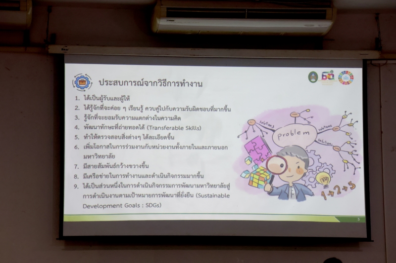 จากนั้นเป็นการบรรยายพิเศษ การพัฒนามหาวิทยาลัยกับการขับเคลื่อนเป้าหมายการพัฒนาที่ยั่งยืน (SDGs) โดย ศาสตราจารย์ ดร.ทศวรรษ สีตะวัน รองอธิการบดี การบรรยายแลกเปลี่ยนเรียนรู้เกี่ยวกับแนวทางการดำเนินงาน SDGs