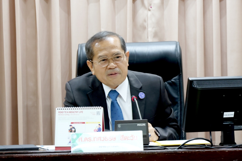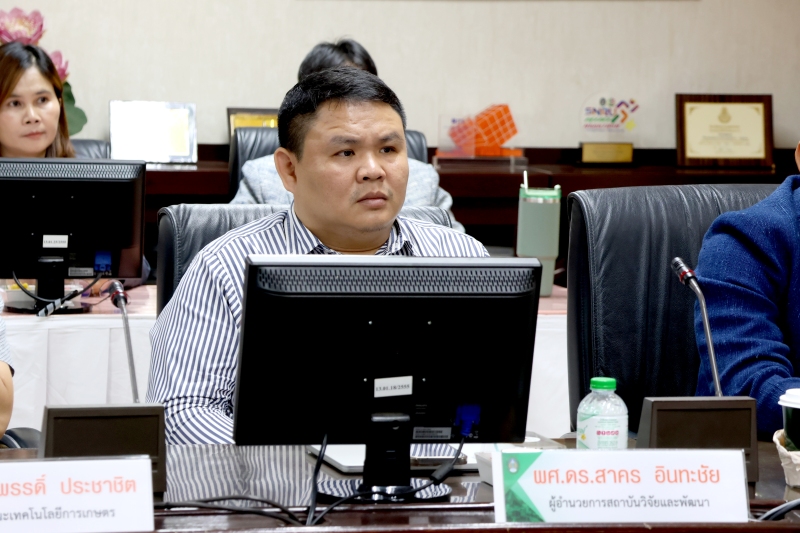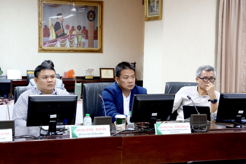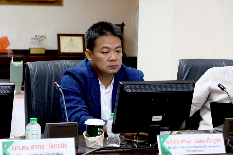 ในการประชุมหารือแนวทางการดำเนินโครงการพัฒนาศักยภาพการผลิตและเพิ่มมูลค่าผลิตภัณฑ์ปศุสัตว์ด้วยวิทยาศาสตร์ เทคโนโลยีและนวัตกรรม (วทน.) พื้นที่จังหวัดมุกดาหาร และแนวทางการจัดทำร่างข้อเสนอโครงการพัฒนาศักยภาพด้านนิวเคลียร์และรังสี ภายใต้กองทุนพิเศษแม่โขง-ล้านช้าง ประจำปีงบประมาณ พ.ศ. 2569 ณ ห้องประชุมสรัสจันทร ชั้น 2 อาคาร 10 มหาวิทยาลัยราชภัฏสกลนคร เพื่อหารือแนวทางการดำเนินโครงการฯ และขับเคลื่อนงาน อว.ส่วนหน้าและงานในพื้นที่ชุมชนร่วมกันในด้านต่าง ๆ นำองค์ความรู้ลงไปถ่ายทอดสู่ชุมชนท้องถิ่นให้มีประสิทธิภาพ และประสิทธิผลต่อไป