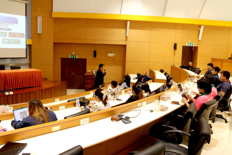 นำเสนอแนวทางการทบทวนแผนยุทธศาสตร์มหาวิทยาลัยราชภัฏสกลนคร ระยะ 5 ปี พ.ศ. 2566 – 2570 (ประจำปีงบประมาณ พ.ศ. 2568) โดย นางอมรรัตน์ ตุ่นกลิ่น รักษาการในตำแหน่งผู้อำนวยการกองนโยบายและแผน พร้อมด้วย นางสาวอรอนงค์ ชูเดชวัฒนา หัวหน้างานยุทธศาสตร์และติดตามประเมินผล จากนั้นนำเสนอผลการดำเนินตามพันธกิจของสำนักวิทยบริการและเทคโนโลยีสารสนเทศ ประจำปีงบประมาณ พ.ศ. 2566 – 2567 และนโยบายการพัฒนามหาวิทยาลัยประเด็นการบริหารจัดการมหาวิทยาลัยดิจิทัล ปีงบประมาณ พ.ศ. 2569 – 2573 โดย อาจารย์กรกช มาตะรัตน์ ผู้อำนวยการสำนักวิทยบริการและเทคโนโลยีสารสนเทศ โดยมีวัตถุประสงค์เพื่อรับฟังนโยบายการพัฒนามหาวิทยาลัย ประเด็นการบริหารจัดการมหาวิทยาลัยดิจิทัล ปีงบประมาณ พ.ศ. 2569 – 2573 และผลการดำเนินตามพันธกิจของสำนักวิทยบริการและเทคโนโลยีสารสนเทศ ประจำปีงบประมาณ พ.ศ. 2566 – 2567 และจุดเน้นของหน่วยงานที่จะดำเนินการ ในปีงบประมาณ พ.ศ. 2569 – 2573 ฯลฯ