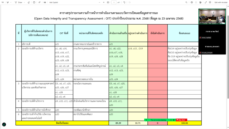 ประชุมพิจารณาและตรวจสอบความถูกต้องตามแบบวัดการเปิดเผยข้อมูลสาธารณะ (OIT) ประจำปีงบประมาณ พ.ศ. 2568 (24 เมษายน 2568)