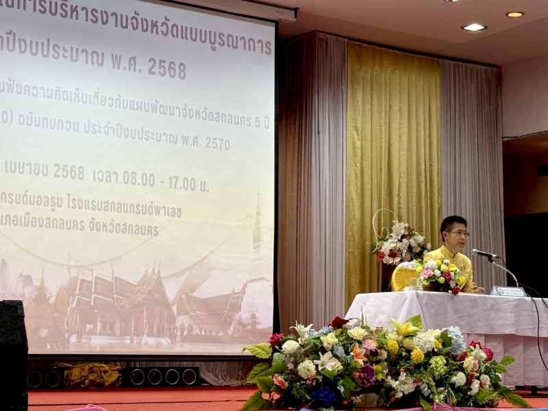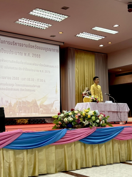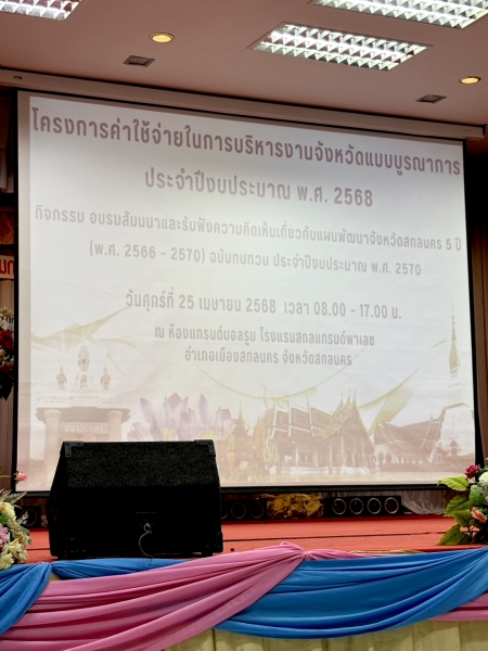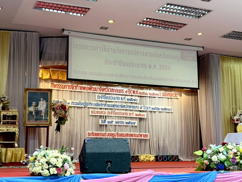 วันที่ 25 เมษายน 2568 เวลา 08.00 – 17.00 น. มหาวิทยาลัยราชภัฏสกลนคร โดย นางอมรรัตน์ ตุ่นกลิ่น รักษาการในตำแหน่งผู้อำนวยการกองนโยบายและแผน พร้อมด้วย นางสาวเบญจพร มายูร นักวิเคราะห์นโยบายและแผนปฏิบัติการ ได้รับมอบหมายจาก ผู้ช่วยศาสตราจารย์ชาคริต ชาญชิตปรีชา อธิการบดีมหาวิทยาลัยราชภัฏสกลนคร ให้เข้าร่วมอบรมเชิงปฏิบัติการเพื่อจัดทำแผนพัฒนาจังหวัดสกลนคร 5 ปี (พ.ศ. 2566 – 2570) ฉบับทบทวน ประจำปีงบประมาณ พ.ศ. 2570 ณ ห้องแกรนด์บอลรูม โรงแรมสกลแกรนด์พาเลซ อำเภอเมืองสกลนคร จังหวัดสกลนคร