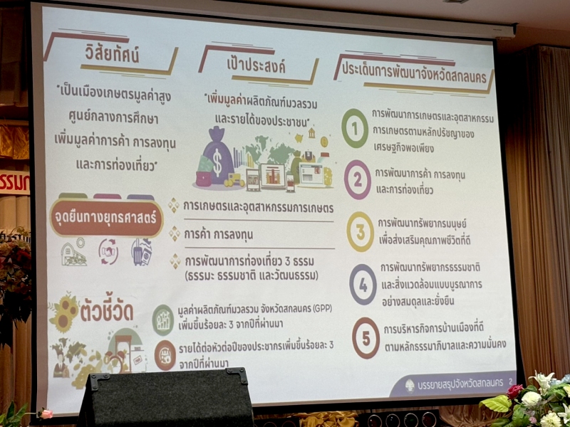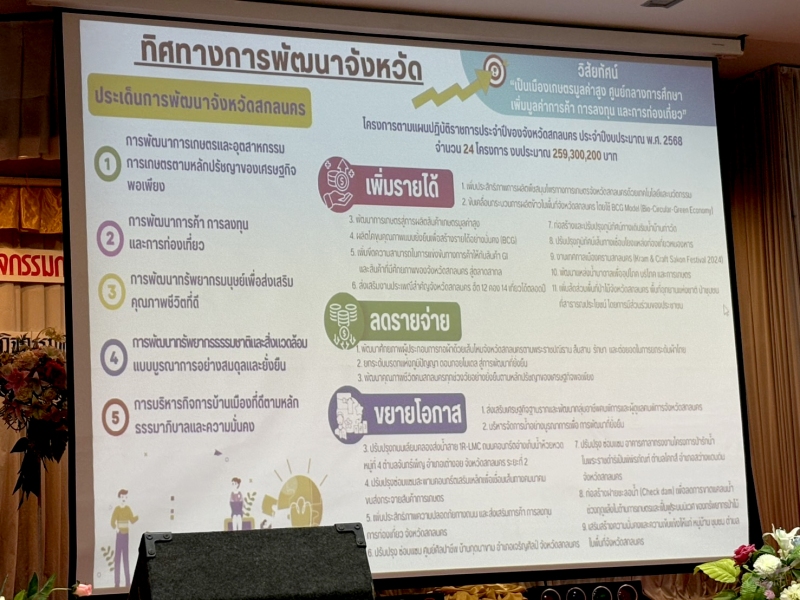 จัดโดย กลุ่มงานยุทธศาสตร์และข้อมูลเพื่อการพัฒนาจังหวัด สำนักงานจังหวัด โดย นายวีระ ฤกษ์วาณิชย์กุล รองผู้ว่าราชการจังหวัดสกลนคร เป็นประธานการประชุม โดยมีวัตถุประสงค์เพื่อ ทบทวนแผนพัฒนาจังหวัด พ.ศ. 2566 – 2570 ให้สอดคล้องกับเป้าหมายการพัฒนาจังหวัดระยะ 20 ปี เพื่อใช้เป็นกรอบและทิศทางในการจัดทำแผนปฏิบัติราชการประจำปีของจังหวัด ประจำปีงบบประมาณ พ.ศ. 2568 – 2570 ฯลฯ