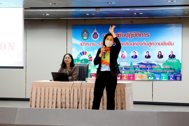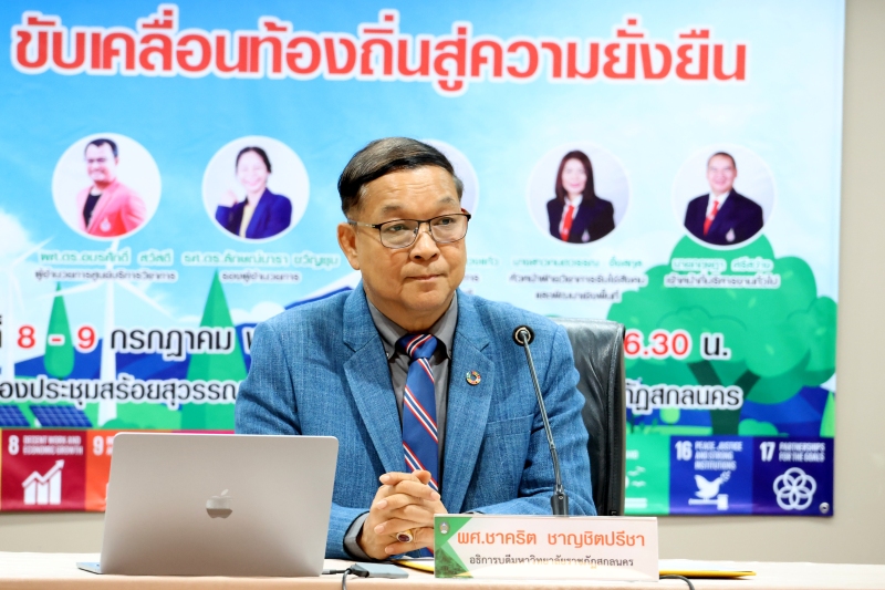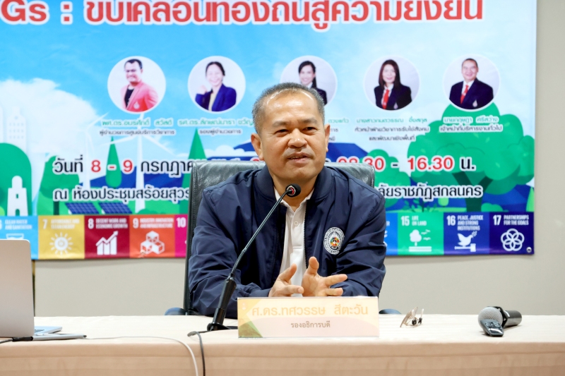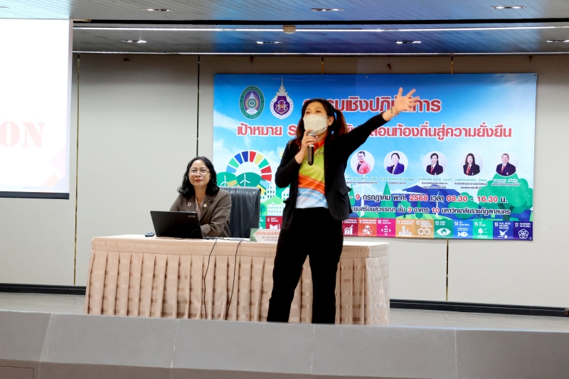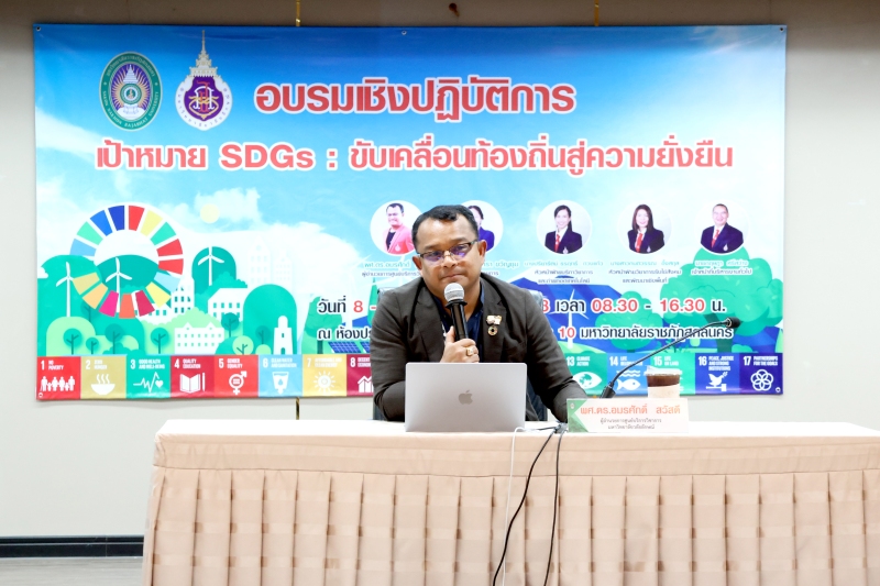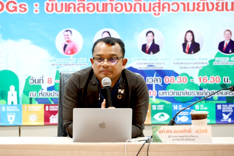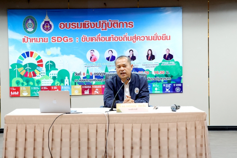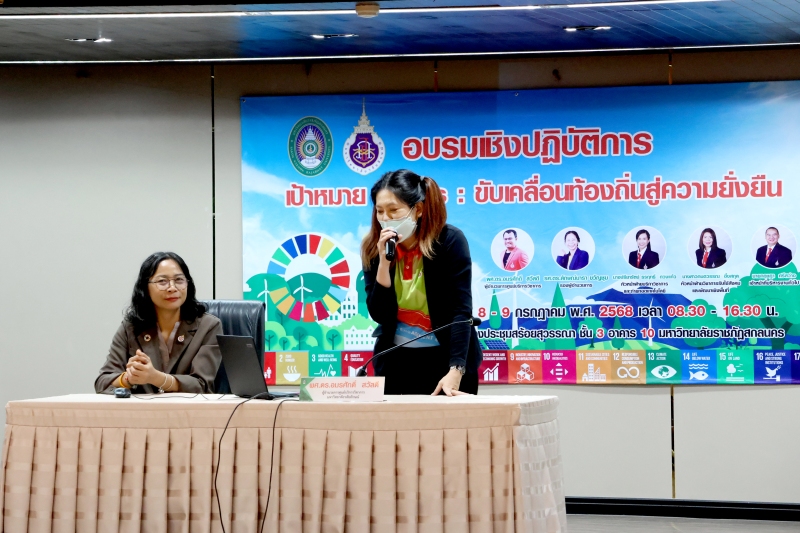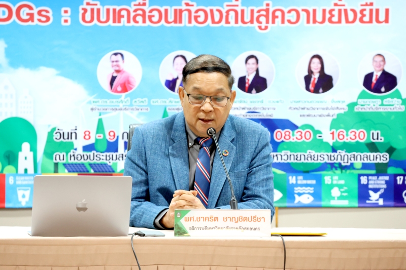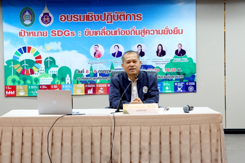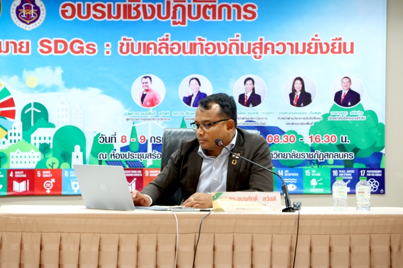 มหาวิทยาลัยราชภัฏสกลนคร ร่วมกับศูนย์บริการวิชาการ มหาวิทยาลัยวลัยลักษณ์ จัดกิจกรรมอบรมเชิงปฏิบัติการ “เป้าหมาย SDGs: ขับเคลื่อนท้องถิ่นสู่ความยั่งยืน” ระหว่างวันที่ 8 – 9 กรกฎาคม 2568 ณ ห้องสร้อยสุวรรณา ชั้น 3 อาคาร 10 เพื่อสร้างความรู้ความเข้าใจเกี่ยวกับเป้าหมายการพัฒนาที่ยั่งยืน (Sustainable Development Goals: SDGs)