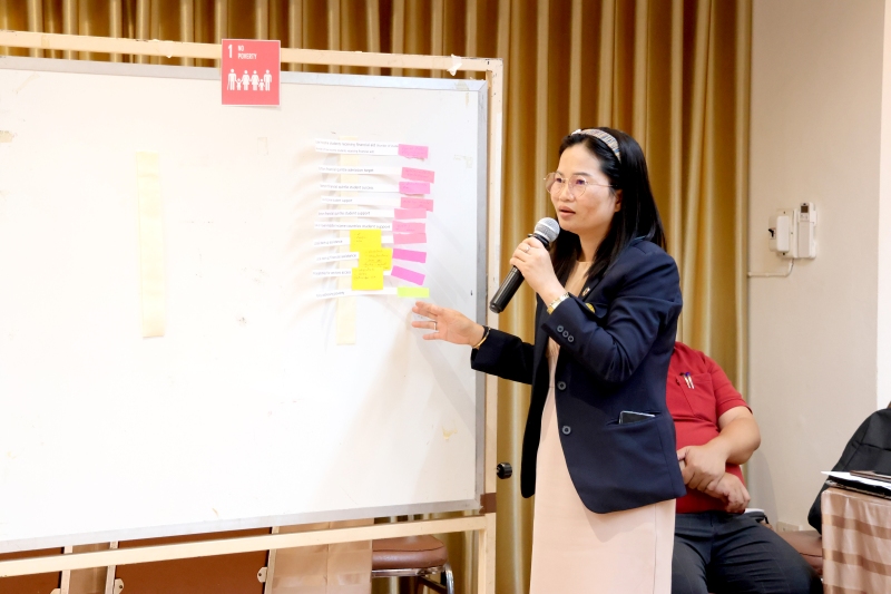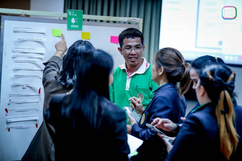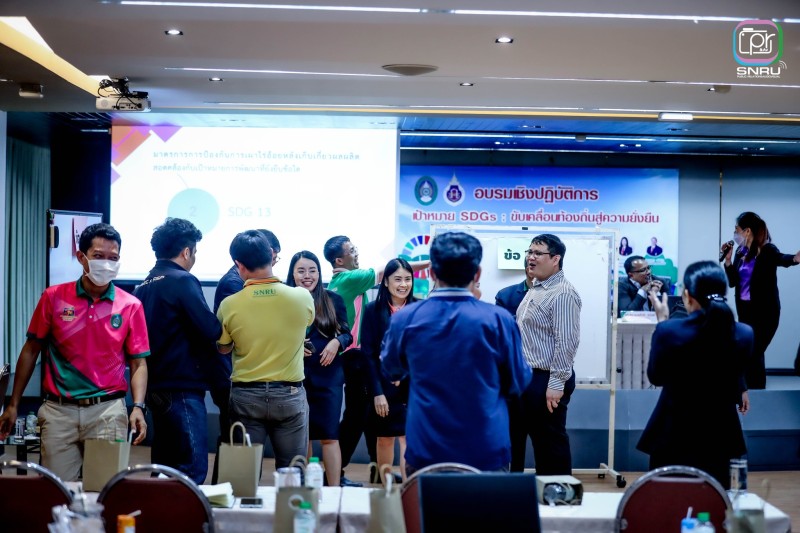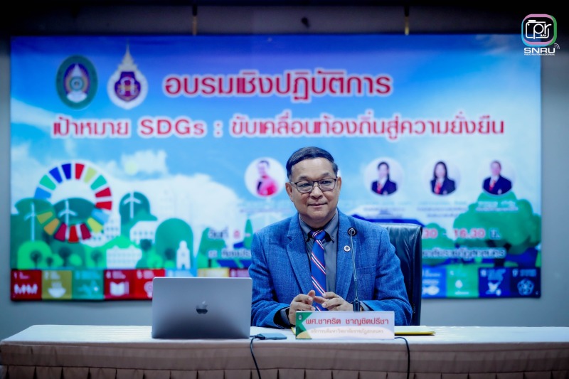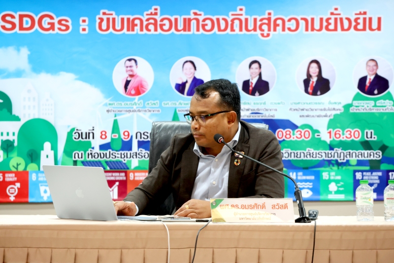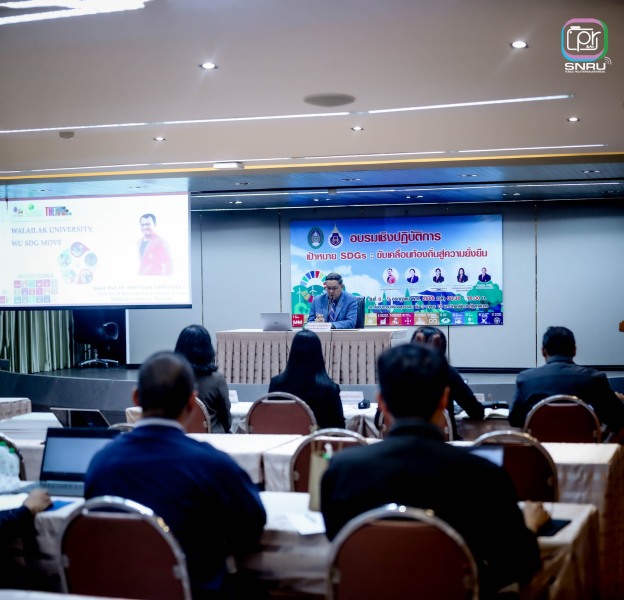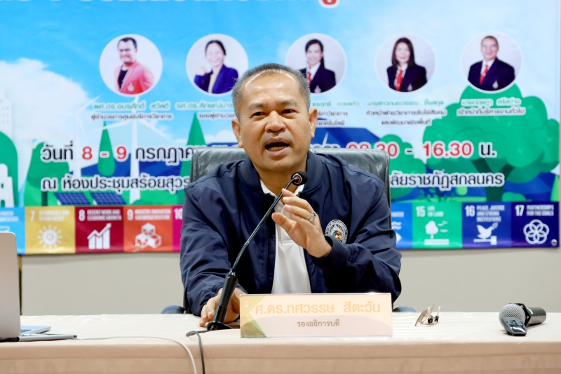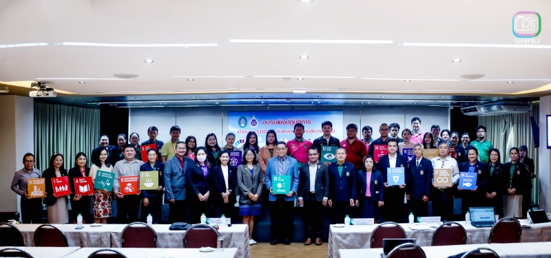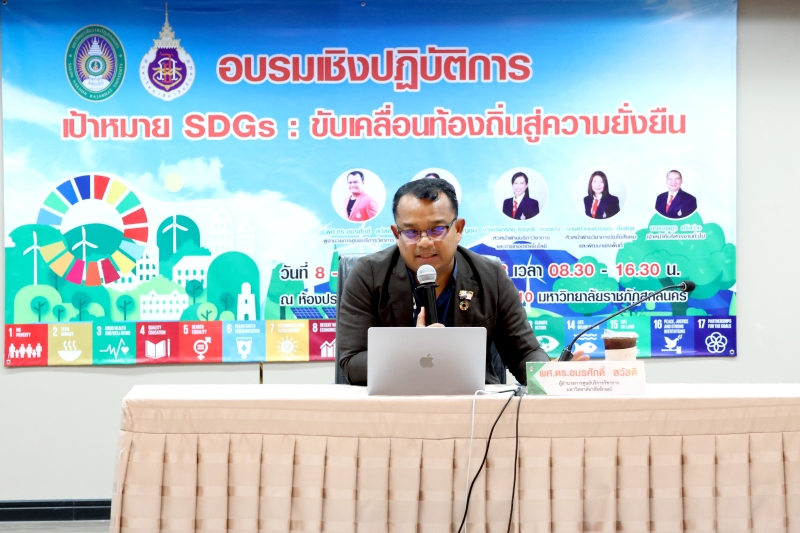 และเสริมสร้างศักยภาพในการออกแบบโครงการและตัวชี้วัดผลลัพธ์ที่สอดคล้องกับพันธกิจของมหาวิทยาลัยเพื่อการพัฒนาท้องถิ่นอย่างยั่งยืน การจัดกิจกรรมครั้งนี้มีเป้าหมายเพื่อสร้างความเข้าใจเชิงลึกเกี่ยวกับ SDGs ให้แก่บุคลากร คณาจารย์ และนักศึกษา โดยเน้นการบูรณาการการเรียนรู้กับการปฏิบัติจริงผ่านกิจกรรมกลุ่ม เช่น การวิเคราะห์ตัวชี้วัด SDGs การออกแบบ Mini SDG Project รวมถึงการทำ Workshop สร้างแผนปฏิบัติการเบื้องต้นที่สามารถนำไปใช้ได้จริง ในงานครั้งนี้ได้รับเกียรติจากผู้ช่วยศาสตราจารย์ชาคริต ชาญชิตปรีชา อธิการบดีมหาวิทยาลัยราชภัฏสกลนคร เป็นประธานกล่าวเปิดงาน พร้อมด้วยวิทยากรผู้ทรงคุณวุฒินำโดย ผศ.ดร.อมรศักดิ์ สวัสดี ผู้อำนวยการศูนย์บริการวิชาการ จากมหาวิทยาลัยวลัยลักษณ์และคณะ ที่ร่วมแบ่งปันความรู้ในหัวข้อ “SDGs กับบทบาทมหาวิทยาลัยเพื่อท้องถิ่น” และ “เทคนิคการทำงานให้ได้คะแนนตามเกณฑ์การประเมิน THE Impact Ranking” กิจกรรมแบ่งออกเป็น 2 วัน โดยวันแรกเน้นการเสริมสร้างความรู้พื้นฐาน SDGs และเทคนิคการขับเคลื่อนองค์กร ส่วนวันที่สองเน้นการปฏิบัติจริง ออกแบบโครงการ และวิเคราะห์ผลกระทบในด้านเศรษฐกิจ สังคม สิ่งแวดล้อม ตลอดจนเชื่อมโยงการทำงานในระดับบุคคล หน่วยงาน และชุมชน ซึ่งได้รับความสนใจจากภาคนักศึกษาและบุคลากรในมหาวิทยาลัยราชภัฏสกลนครจำนวนมาก มหาวิทยาลัยราชภัฏสกลนคร มุ่งมั่นเป็นมหาวิทยาลัยเพื่อท้องถิ่น ที่พร้อมขับเคลื่อนความยั่งยืนสู่ชุมชนอย่างแท้จริง ตามวิสัยทัศน์ “พัฒนาท้องถิ่นด้วยความรู้ สู่ความยั่งยืนในอนาคต”