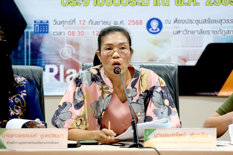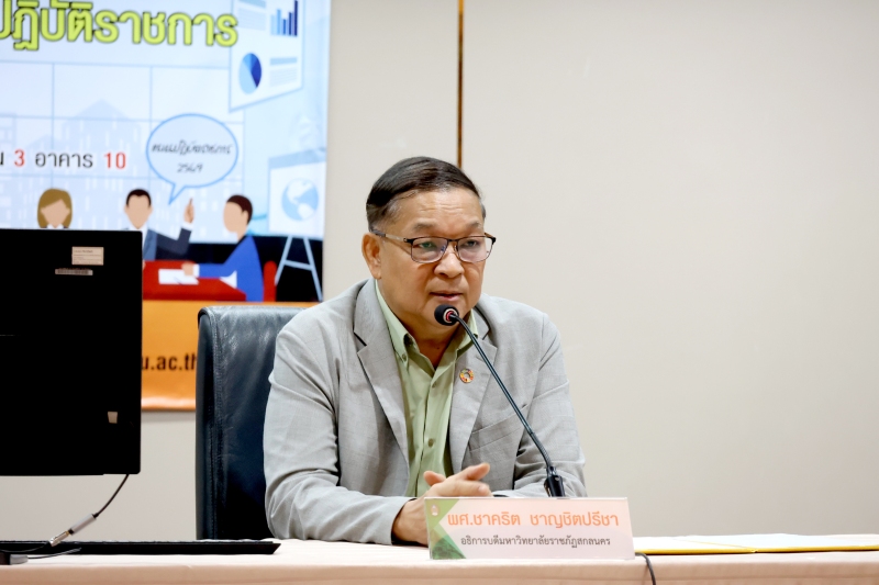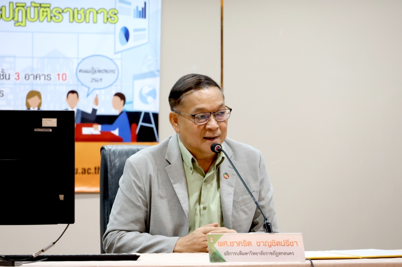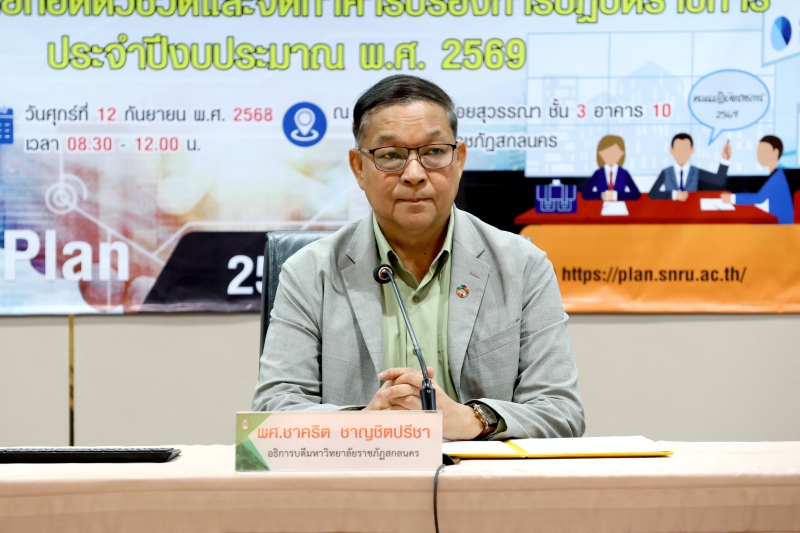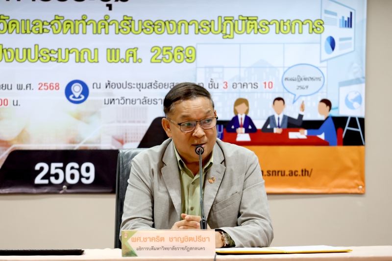 โดย ผู้ช่วยศาสตราจารย์ชาคริต ชาญชิตปรีชา อธิการบดี เป็นประธานเปิดการประชุม จากนั้น ชี้แจงแผนปฏิบัติราชการและงบประมาณรายจ่ายของมหาวิทยาลัยราชภัฏสกลนคร ประจำปีงบประมาณ พ.ศ. 2569 โดย ศาสตราจารย์ ดร.ทศวรรษ สีตะวัน รองอธิการบดี ชี้แจงรายละเอียดตัวชี้วัดตามแผนปฏิบัติราชการฯ การจัดทำคำรับรองการปฏิบัติราชการ และแนวทางการวางแผนการใช้จ่ายงบประมาณ ประจำปีงบประมาณ พ.ศ. 2569 โดย นางอมรรัตน์ ตุ่นกลิ่น รักษาการในตำแหน่งผู้อำนวยการกองนโยบายและแผน พร้อมด้วย นางสาวอรอนงค์ ชูเดชวัฒนา หัวหน้างานยุทธศาสตร์และติดตามประเมินผล และ นายภานุวัฒิ ศักดิ์ดา นักวิเคราะห์นโยบายและแผนปฏิบัติการ