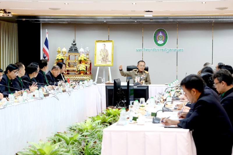 วันที่ 17 กันยายน 2568 พลเอก ดาว์พงษ์ รัตนสุวรรณ องคมนตรี กล่าวเปิดการตรวจเยี่ยมและติดตามการดำเนินงานตามยุทธศาสตร์มหาวิทยาลัยราชภัฏเพื่อการพัฒนาท้องถิ่น ประจำปี 2568 โดยนายชูศักดิ์ รู้ยิ่ง ผู้ว่าราชการจังหวัดสกลนคร และ ผศ.ชาคริต ชาญชิตปรีชา อธิการบดีมหาวิทยาลัยราชภัฏสกลนคร พร้อมด้วยหัวหน้าส่วนราชการในจังหวัดสกลนคร ผู้บริหาร อาจารย์ และบุคลากร มหาวิทยาลัยราชภัฏสกลนคร ร่วมให้การต้อนรับ