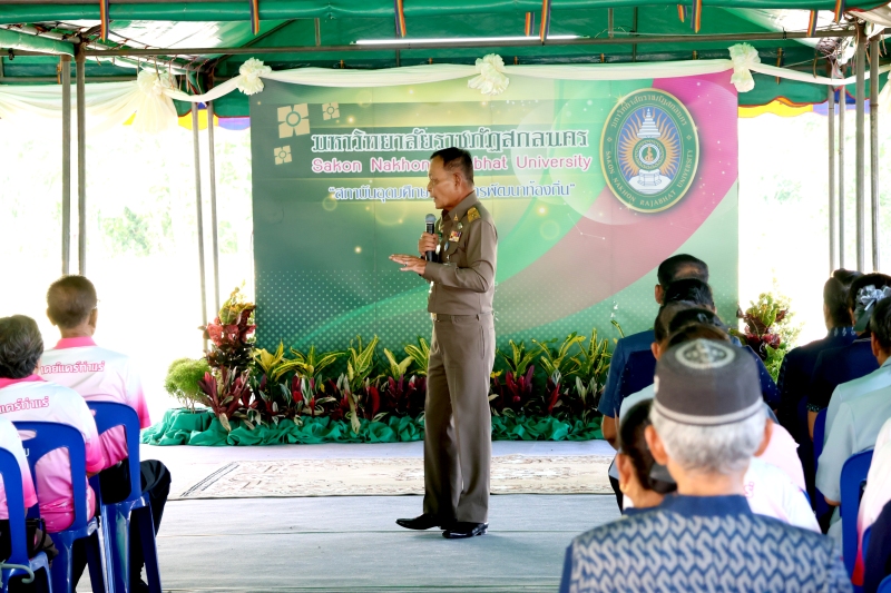 ณ ห้องประชุมสร้อยสุวรรณา อาคาร 10 มหาวิทยาลัยราชภัฏสกลนคร ในช่วงเช้าเป็นการบรรยายสรุปสรุปผลการยกระดับคุณภาพการศึกษาของคณะ โดยคณบดีทั้ง 6 คณะ ได้แก่ คณะมนุษยศาสตร์และสังคมศาสตร์ คณะวิทยาการจัดการ คณะเทคโนโลยีการเกษตร คณะวิทยาศาสตร์และเทคโนโลยี คณะครุศาสตร์ และคณะเทคโนโลยีอุตสาหกรรมต่อด้วยการบรรยายสรุป “ขับเคลื่อนการทำงานเชิงรุกของฝ่ายกิจการนักศึกษาของมหาวิทยาลัย” โดย อาจารย์ ดร.พรเทพ เสถียรนพเก้า รองอธิการบดีด้านกิจการนักศึกษา จากนั้นช่วงบ่าย องคมนตรี ได้ลงพื้นที่ตรวจเยี่ยมโครงการพัฒนาท้องถิ่นของมหาวิทยาลัยราชภัฏสกลนคร ศูนย์เรียนรู้ชุมชนก้าวมั่น ณ ศูนย์เดย์แคร์เพื่อผู้สูงอายุ อัครสังฆมณฑลท่าแร่-หนองแสง ต.ท่าแร่ อ.เมือง จ.สกลนคร ในด้านมิติสังคม ด้านมิติเศรษฐกิจ ด้านมิติสิ่งแวดล้อม ด้านมิติการศึกษา
