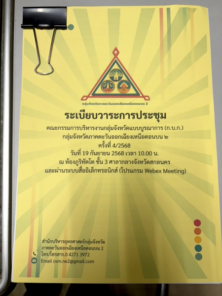 ให้เข้าร่วมประชุมคณะกรรมการบริหารกลุ่มจังหวัดแบบบูรณาการ (ก.บ.ก.) กลุ่มภาคตะวันออกเฉียงเหนือตอนบน 2 ครั้งที่ 4/2568 ณ ห้องประชุมภูริทัตโต ชั้น 3 ศาลากลางจังหวัด (หลังใหม่) โดยมีนายวีระ ฤกษ์วาณิชย์กุล รองผู้ว่าราชการจังหวัดสกลนคร เป็นประธานการประชุม จัดโดย สำนักบริหารยุทธศาสตร์กลุ่มจังหวัดภาคตะวันออกเฉียงเหนือตอนบน 2