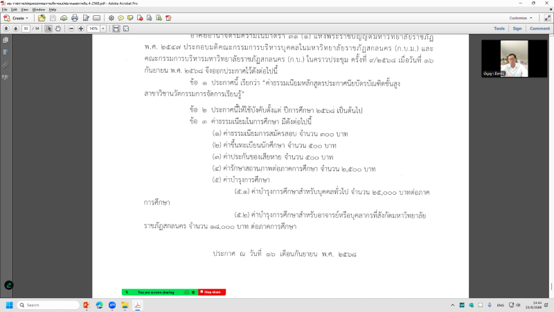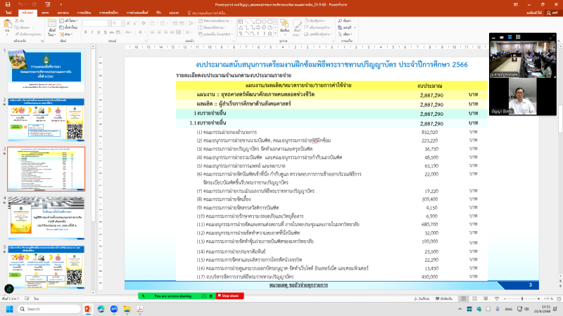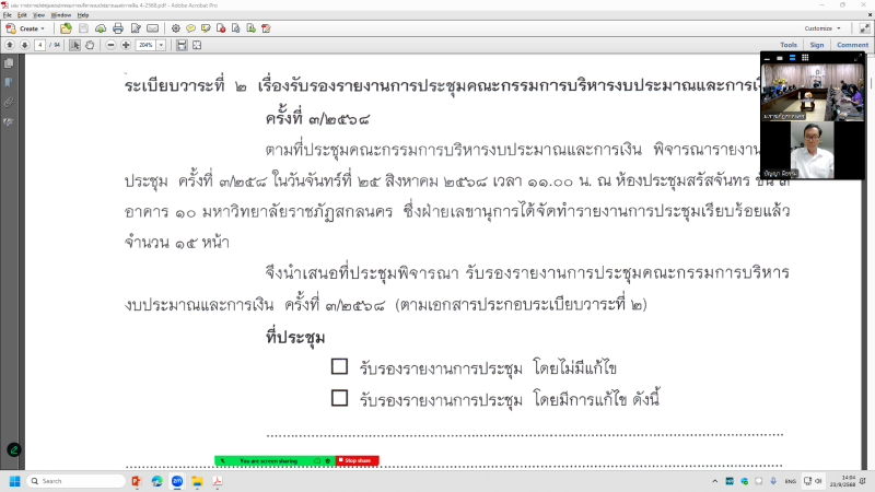 วันอังคารที่ 23 กันยายน พ.ศ. 2568 เวลา 14.00 น. กองนโยบายและแผน จัดประชุมคณะกรรมการบริหารงบประมาณและการเงิน ครั้งที่ 4/2568 ผ่านสื่ออิเล็กทรอนิกส์ ระบบ Zoom Meeting ณ ห้องประชุมสรัสจันทร ชั้น 2 อาคาร 10 มหาวิทยาลัยราชภัฏสกลนคร