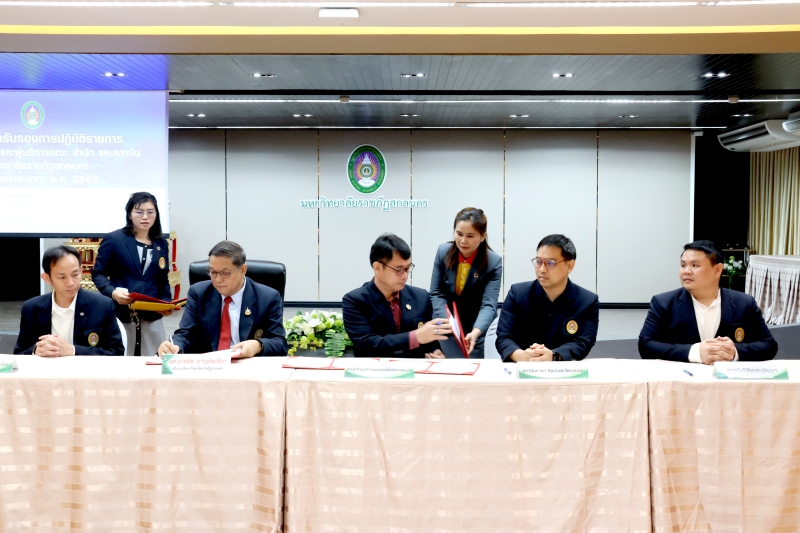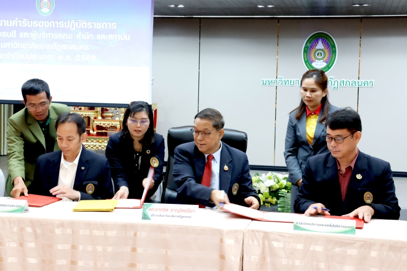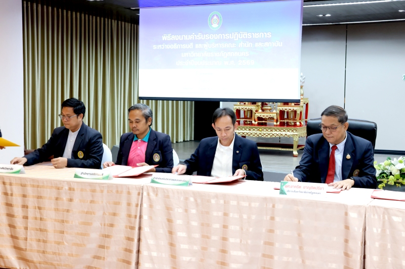 พิธีลงนามคำรับรองการปฏิบัติราชการระหว่างอธิการบดี และผู้บริหารคณะ สำนัก และสถาบัน มหาวิทยาลัยราชภัฏสกลนคร ประจำปีงบประมาณ พ.ศ. 2569 (30 กันยายน พ.ศ. 2568