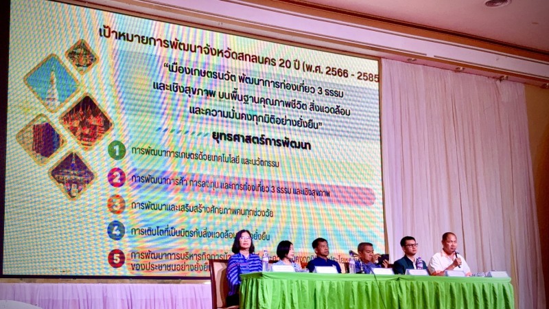 โดย นายวีระ ฤกษ์วาณิชย์กุล รองผู้ว่าราชการจังหวัดสกลนคร เป็นประธานการประชุม จัดโดย สำนักงานจังหวัดสกลนคร โดยมีวัตถุประสงค์เพื่อร่วมเสวนา อภิปรายกลุ่ม รับฟังความคิดเห็นเกี่ยวกับทิศทางการพัฒนาจังหวัดสกลนคร และเป้าหมายการพัฒนาจังหวัดสกลนคร 20 ปี พ.ศ. 2566 – 2585 (ฉบับปรับปรุง ประจำปีงบประมาณ พ.ศ. 2570) ตามประเด็นยุทธศาสตร์การพัฒนา และสนับสนุนการจัดทำแผน และประสานแผนพัฒนาในระดับพื้นที่ การจัดทำแผนพัฒนาจังหวัด และแผนปฏิบัฏิบัติราชการประจำปีของจังหวัด รวมถึงการจัดทำคำของบประมาณของจังหวัดเสนอต่อ ก.บ.จ. ให้มีประสิทธิภาพและเกิดประโยชน์สูงสุดต่อพื้นที่