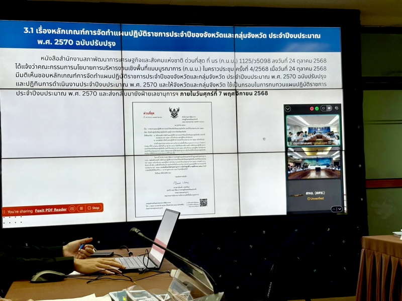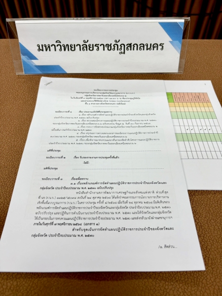วันจันทร์ที่ 3 พฤศจิกายน พ.ศ. 2568 เวลา 13.30 น. มหาวิทยาลัยราชภัฏสกลนคร โดย นางสาวเบญจพร มายูร นักวิเคราะห์นโยบายและแผนปฏิบัติการ ได้รับมอบหมายจาก ผู้ช่วยศาสตราจารย์ชาคริต ชาญชิตปรีชา อธิการบดี ให้เข้าร่วมประชุมคณะอนุกรรมการบริหารงานกลุ่มจังหวัดแบบบูรณาการ (อ.ก.บ.ก.) กลุ่มจังหวัดภาคตะวันออกเฉียงเหนือตอนบน 2 ณ ห้องประชุมภูริทัตโต ชั้น 3 ศาลากลางจังหวัด (หลังใหม่) โดย นายวีรรัตน์ ธีรมิตร รองผู้ว่าราชการจังหวัดสกลนคร เป็นประธานการประชุม จัดโดย สำนักงานจังหวัดสกลนคร