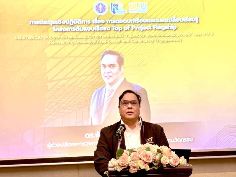 พร้อมนำเสนอการถอดบทเรียนโครงการต้นแบบเรือธง Top of Project Flagship สู่ความสำเร็จของมหาวิทยาลัย รางวัล สุดยอดแห่งโครงการเรือธง Top of Project Flagship 2025 สาขาด้านการใช้ประโยชน์จากพื้นที่ โครงการจัดหารายได้จากการใช้ประโยชน์จากพื้นที่ของมหาวิทยาลัยราชภัฏสกลนคร โดยได้รับเกียรติจาก ดร.พันธ์เพิ่มศักดิ์ อารณี ผู้ช่วยปลัดกระทรวงการอุดมศึกษา วิทยาศาสตร์ วิจัยและนวัตกรรม (อว.) เป็นประธานกล่าวเปิดการประชุม จัดโดยฝ่ายพัฒนาสังคมและสิ่งแวดล้อม สำนักบริการวิชาการ มหาวิทยาลัยบูรพา โดยมีวัตถุประสงค์เพื่อให้สถาบันอุดมศึกษากลุ่มพัฒนาชุนชนท้องถิ่นหรือชุมชนอื่น (กลุ่มที่ 3) มีส่วนร่วมแสดงความคิดเห็นแลกเปลี่ยนเรียนรู้และออกแบบระบบการบริหารทางการเงินและรายได้ที่นำไปสู่การปรับปรุง แก้ไขระเบียบ ข้อบังคับ และประกาศของมหาวิทยาลัยอย่างเป็นรูปธรรม