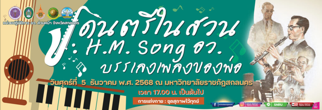 ขอเชิญร่วมงาน “ดนตรีในสวน : H.M. Song อว. บรรเลงเพลงของพ่อ”วันที่ 5 ธันวาคม 2568 เวลา 17.00 น. เป็นต้นไป ณ หอประชุมจามจุรี 1 มหาวิทยาลัยราชภัฏสกลนคร เผยเเพร่เมื่อ ธันวาคม 2, 2568ธันวาคม 2, 2025 โดย ประภาพร คำโสมศรี 7 เข้าชม กำหนดการ-วันที่-5-ธค-68Download
