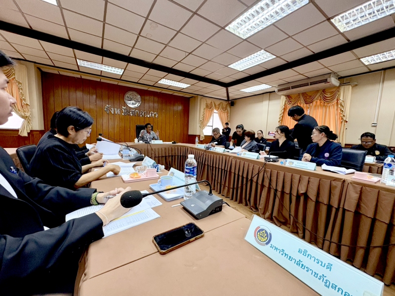 วันพฤหัสบดีที่ 11 ธันวาคม พ.ศ. 2568 เวลา 10.00 น. มหาวิทยาลัยราชภัฏสกลนคร โดย นางสาวเบญจพร มายูร นักวิเคราะห์นโยบายและแผนปฏิบัติการ ได้รับมอบหมายจาก ผู้ช่วยศาสตราจารย์ชาคริต ชาญชิตปรีชา อธิการบดี ให้เข้าร่วมประชุมคณะกรรมการเครือข่ายองค์ความรู้ (Knowledge-Based OTOP – KBO) ครั้งที่ 1/2569 ณ ห้องประชุมเทสรังสี ชั้น 2 ศาลากลางจังหวัดสกลนคร (หลังเก่า)