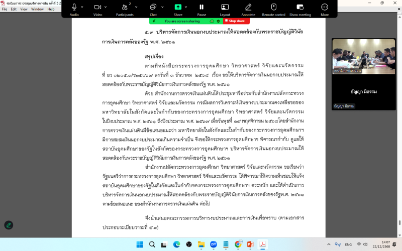 ประชุมคณะกรรมการบริหารงบประมาณและการเงิน ครั้งที่ 5/2568 (22 ธันวาคม 2568)