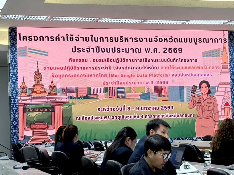 โดย นายปริญ นิทัศน์เอก รองผู้ว่าราชการจังหวัดสกลนคร เป็นประธานการประชุม จัดโดย สำนักงานจังหวัดสกลนคร มีวัตถุประสงค์เพื่อ อบรมการใช้แพลตฟอร์มกลางข้อมูลกระทรวงมหาดไทย (MOI Single Data Platform) ดังนี้ 1. ระบบบันทึกโครงการตามแผนปฏิบัติราชการประจำปี (จังหวัด/ กลุ่มจังหวัด) 2. ระบบบันทึกกิจกรรมตามแผนปฏิบัติงาน (Action Plan) 2. ระบบงบประมาณค่าใช้จ่ายในการดำเนินการแก้ปัญหาความเดือดร้อนเร่งด่วนของประชาชนในจังหวัด 4. ระบบ Open data และได้ทดลองกรอกข้อมูลโครงการปีงบประมาณ 2569 – 2570 ในระบบบันทึกโครงการตามแผนปฏิบัติราชการประจำปี (จังหวัด/ กลุ่มจังหวัด) และเป็นการพัฒนาขีดความสามารถ ความรู้ ทักษะให้กับผู้ปฏิบัติงานด้านการจัดทำแผนงาน/โครงการตามแผนปฏิบัติราชการประจำปีงประมาณ พ.ศ. 2569 ของจังหวัดสกลนคร ให้มีประสิทธิภาพสูงสุด ฯลฯ