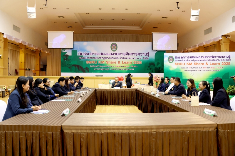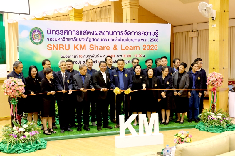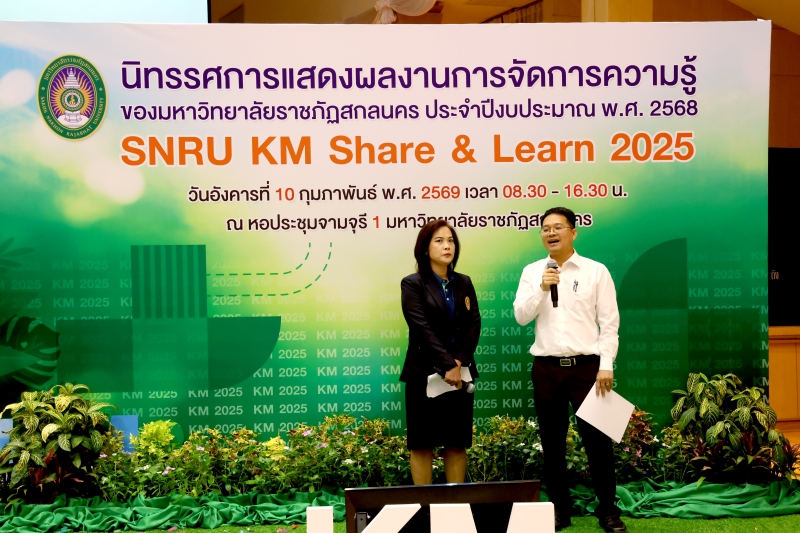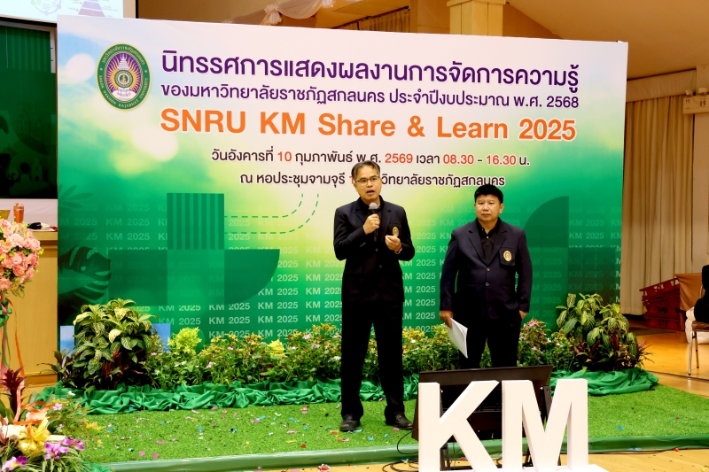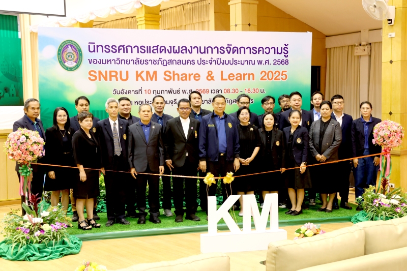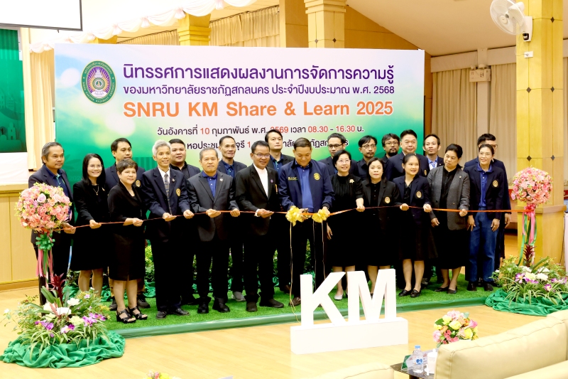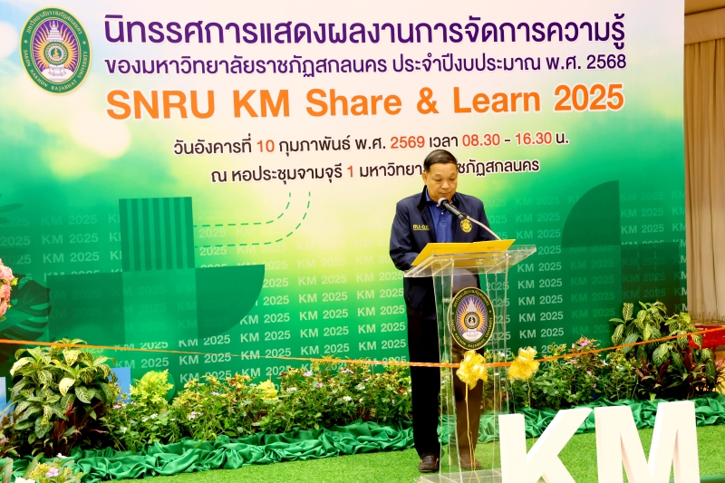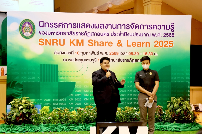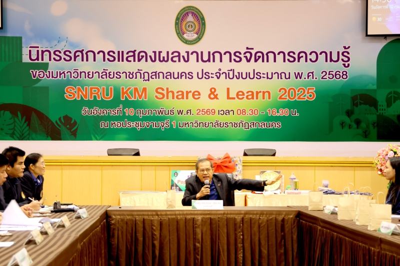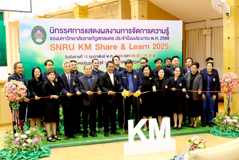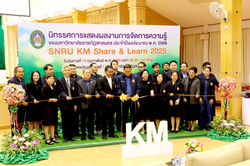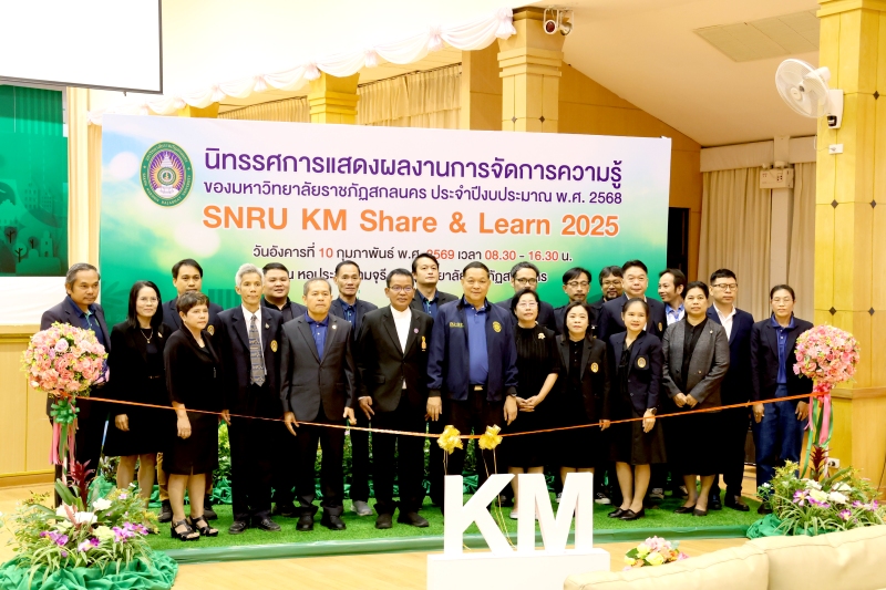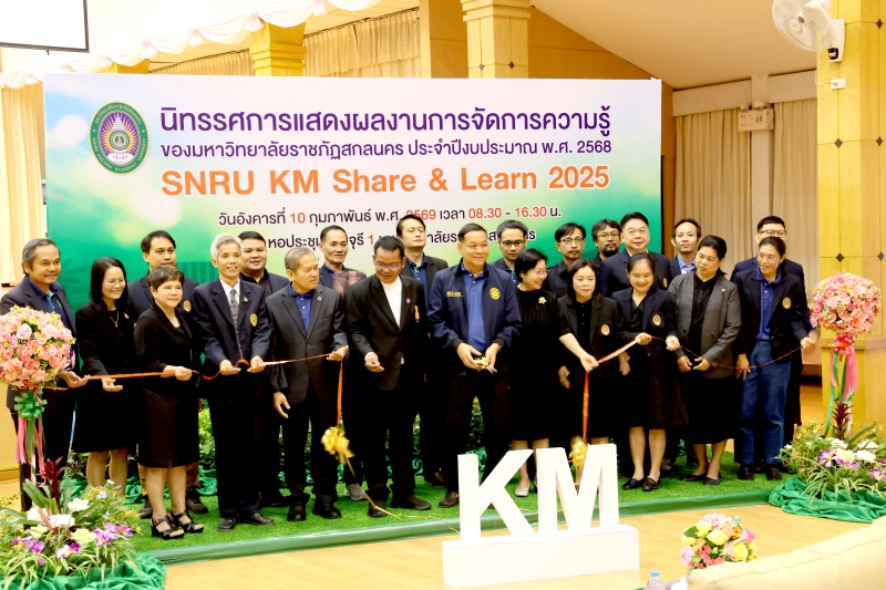 วันอังคารที่ 10 กุมภาพันธ์ พ.ศ. 2569 มหาวิทยาลัยราชภัฏสกลนคร จัดงานนิทรรศการแสดงผลงานการจัดการความรู้ของมหาวิทยาลัยราชภัฏสกลนคร ประจำปีงบประมาณ พ.ศ. 2568 (SNRU KM share & learn 2025) ณ หอประชุมจามจุรี 1 มหาวิทยาลัยราชภัฏสกลนคร