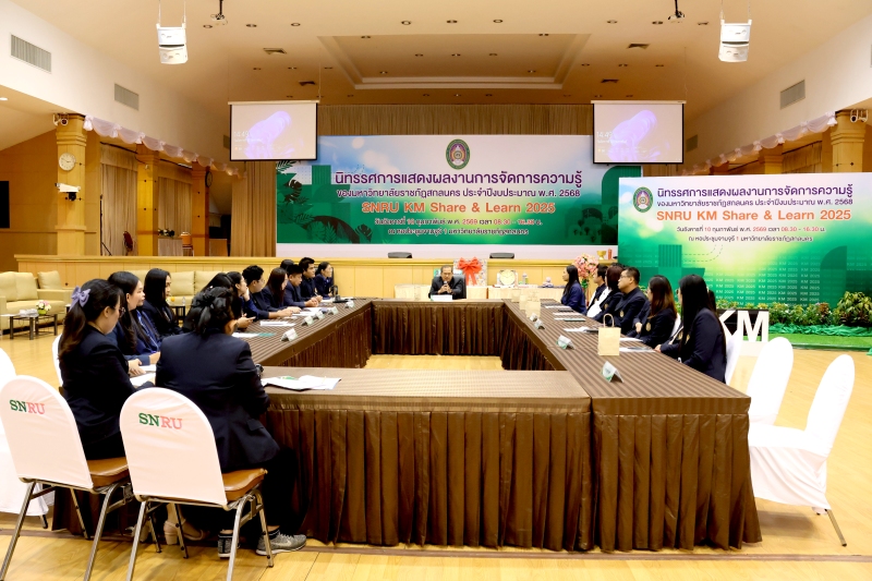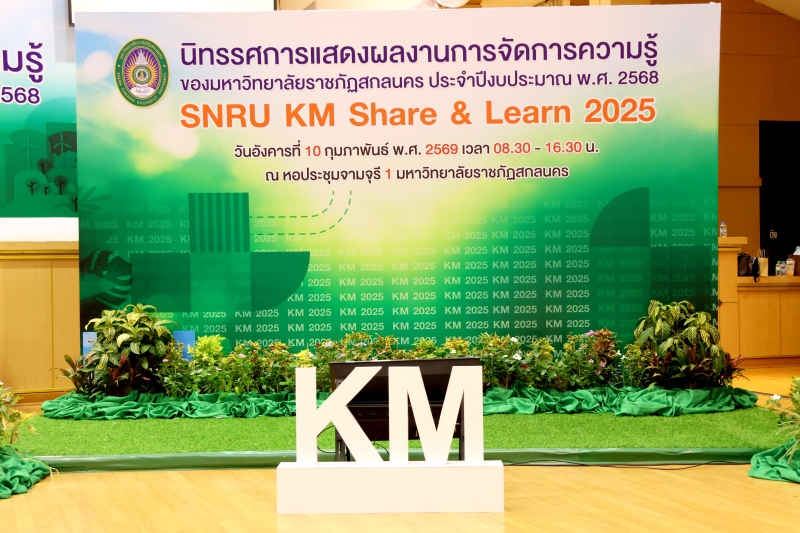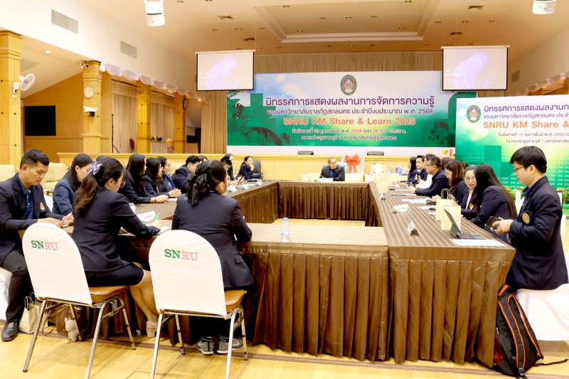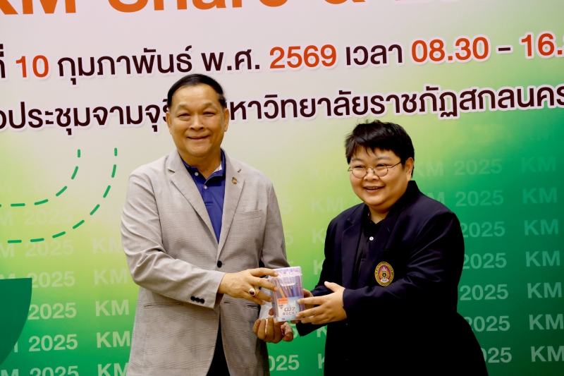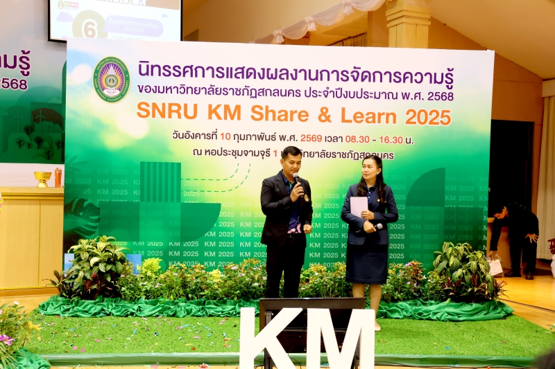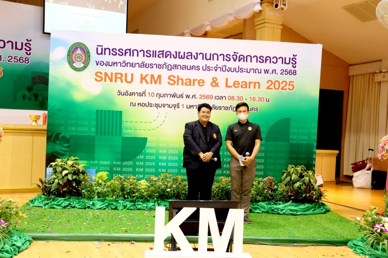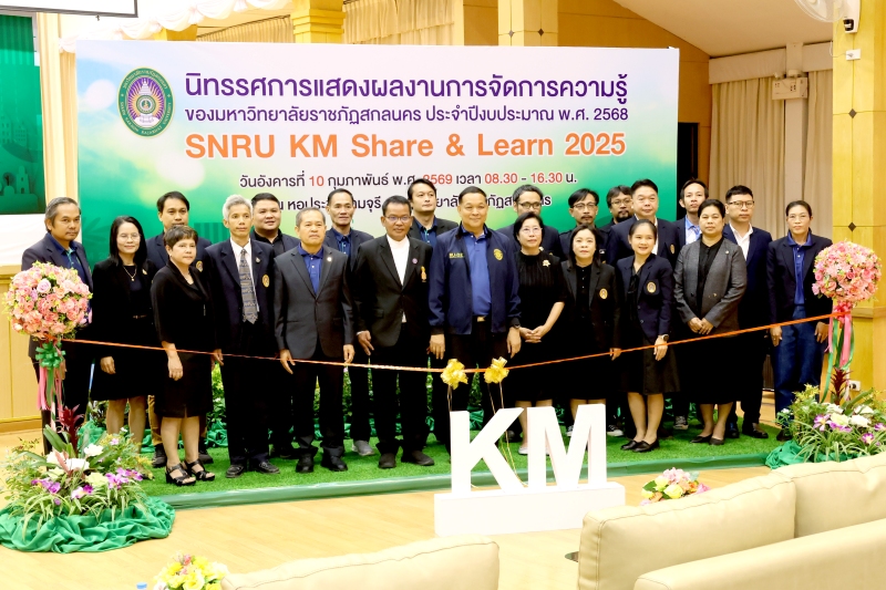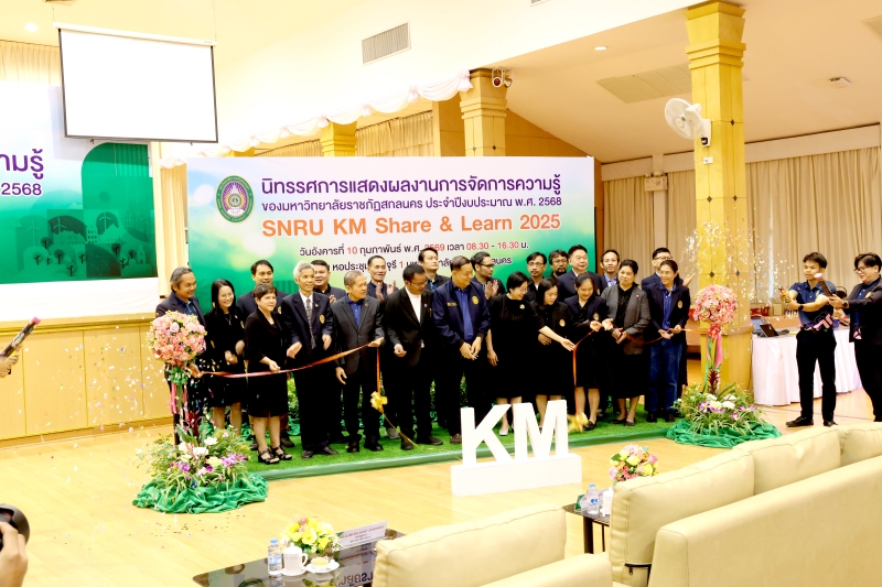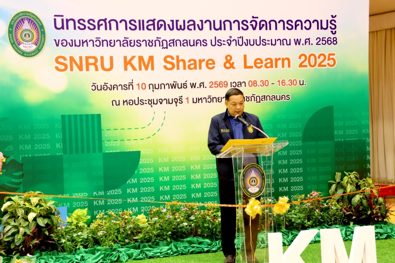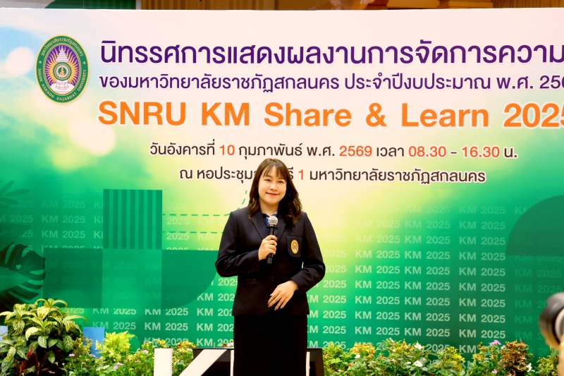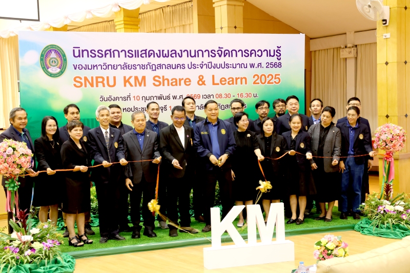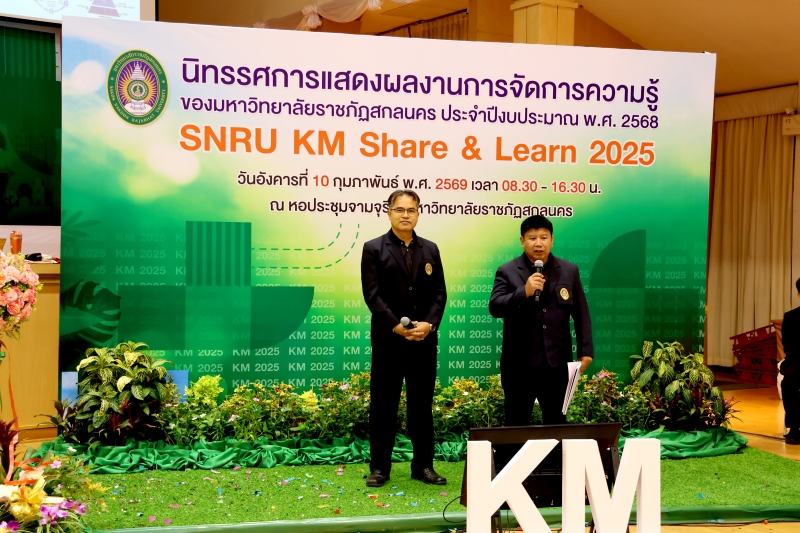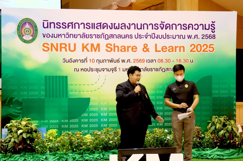 วันอังคารที่ 10 กุมภาพันธ์ พ.ศ. 2569 มหาวิทยาลัยราชภัฏสกลนคร จัดงานนิทรรศการแสดงผลงานการจัดการความรู้ของมหาวิทยาลัยราชภัฏสกลนคร ประจำปีงบประมาณ พ.ศ. 2568 (SNRU KM share & learn 2025) ณ หอประชุมจามจุรี 1 มหาวิทยาลัยราชภัฏสกลนคร