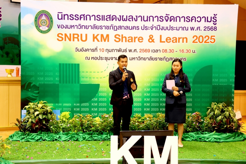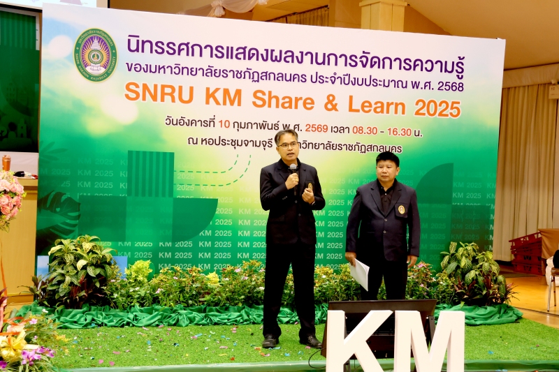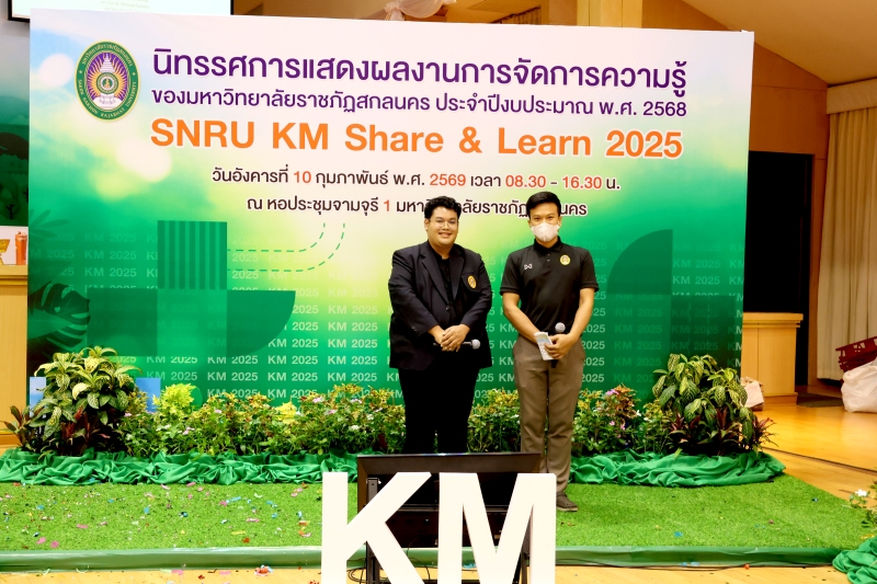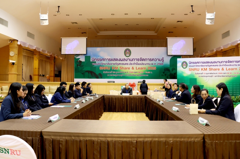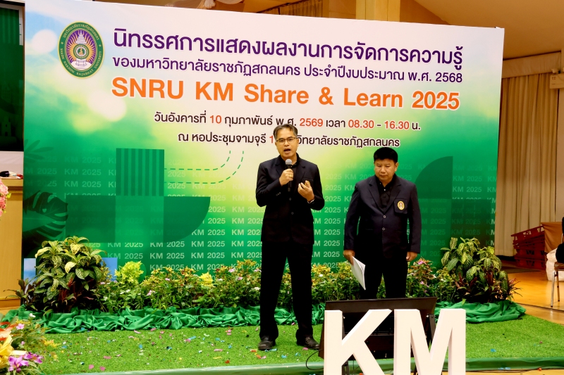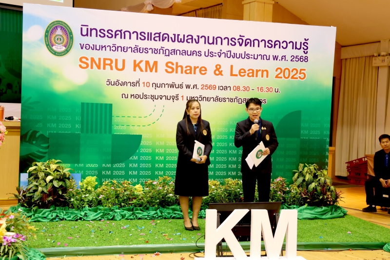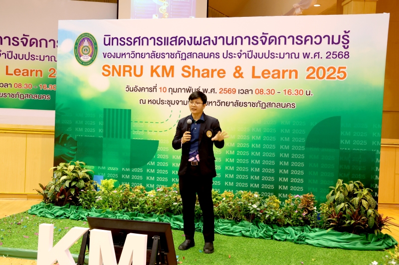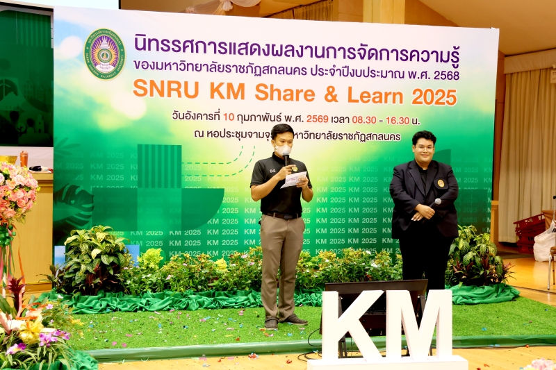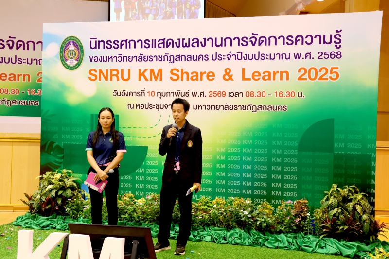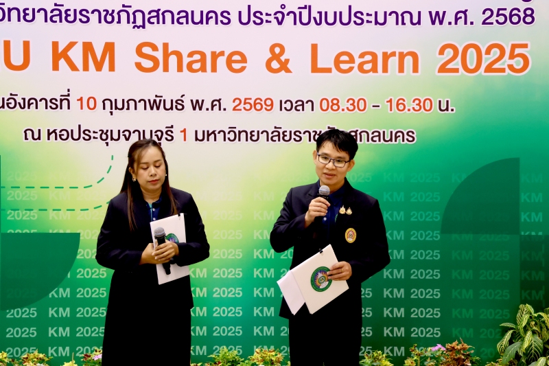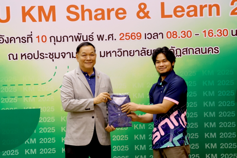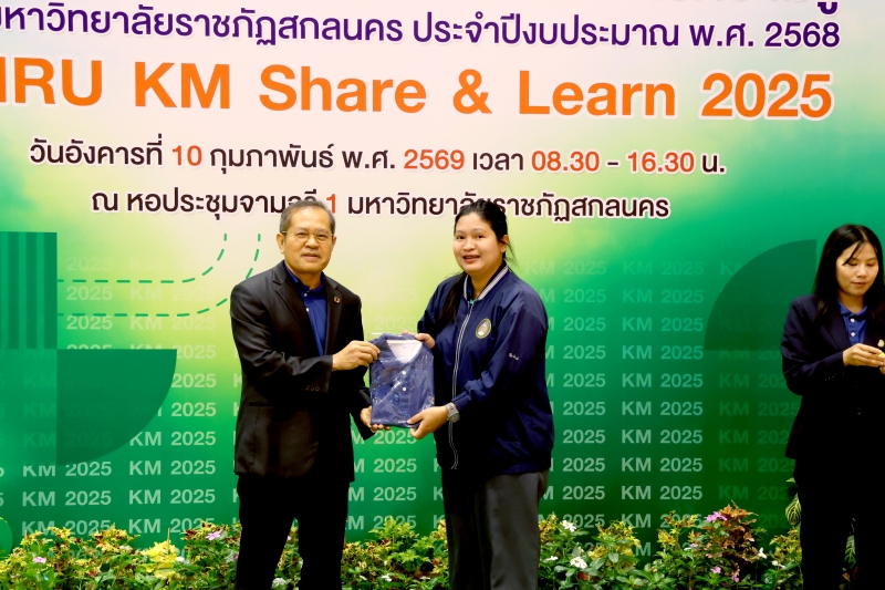 วันอังคารที่ 10 กุมภาพันธ์ พ.ศ. 2569 มหาวิทยาลัยราชภัฏสกลนคร จัดงานนิทรรศการแสดงผลงานการจัดการความรู้ของมหาวิทยาลัยราชภัฏสกลนคร ประจำปีงบประมาณ พ.ศ. 2568 (SNRU KM share & learn 2025) ณ หอประชุมจามจุรี 1 มหาวิทยาลัยราชภัฏสกลนคร