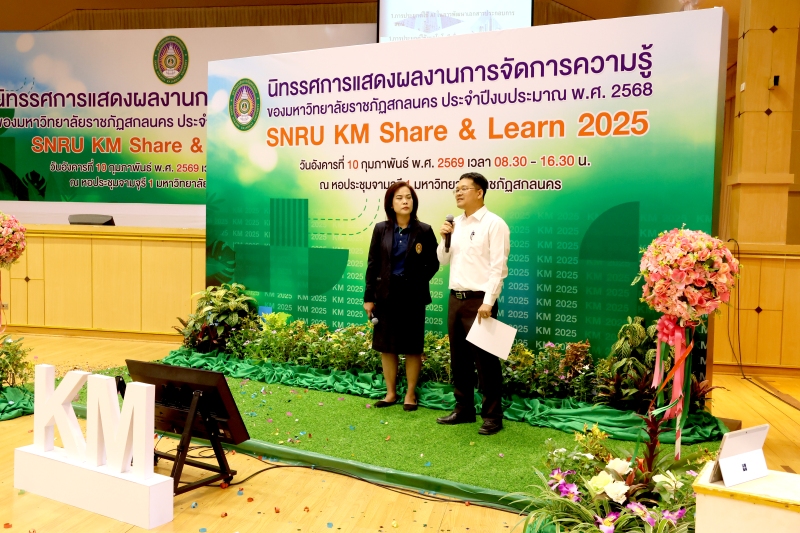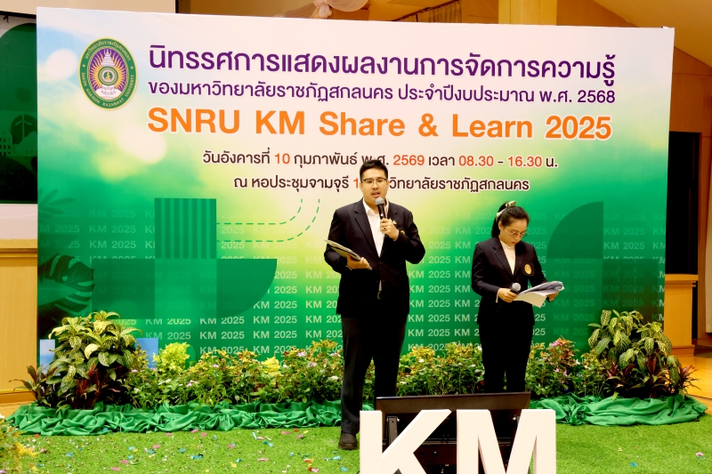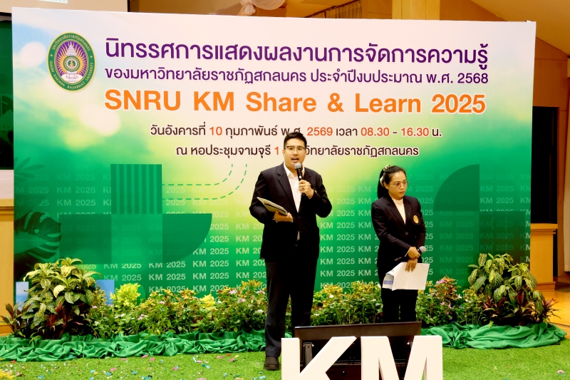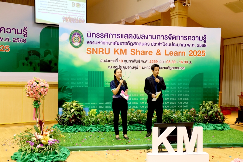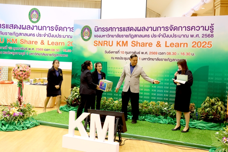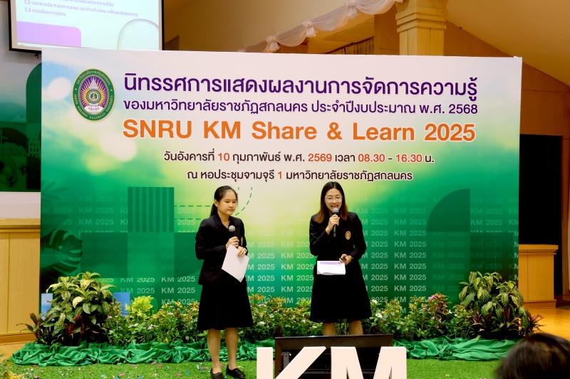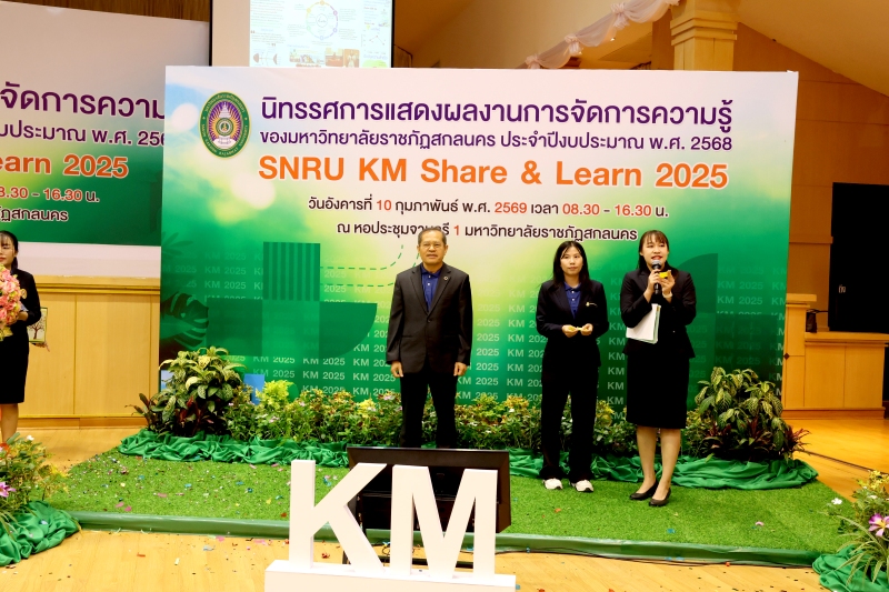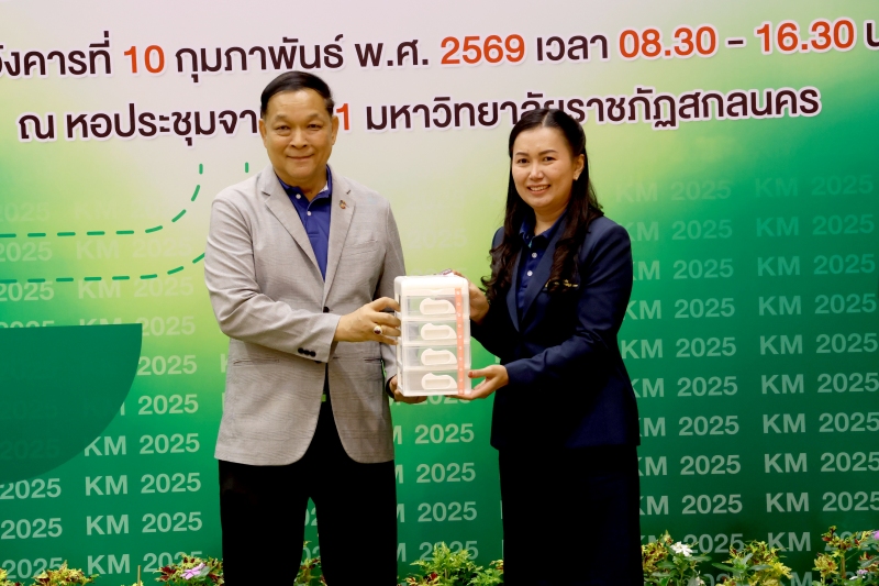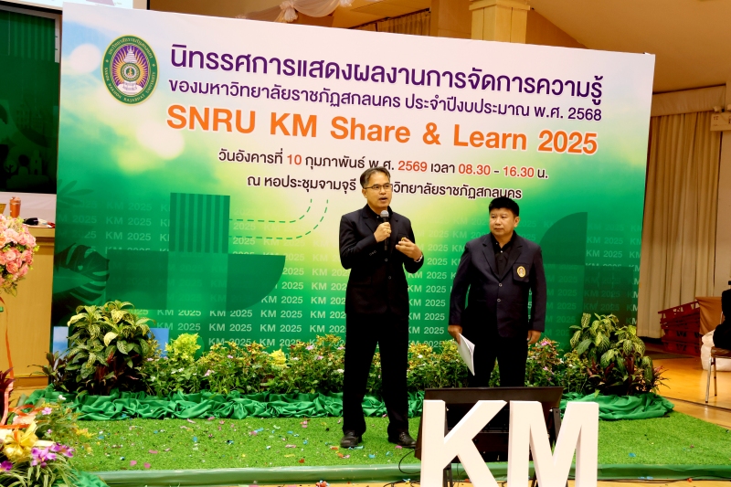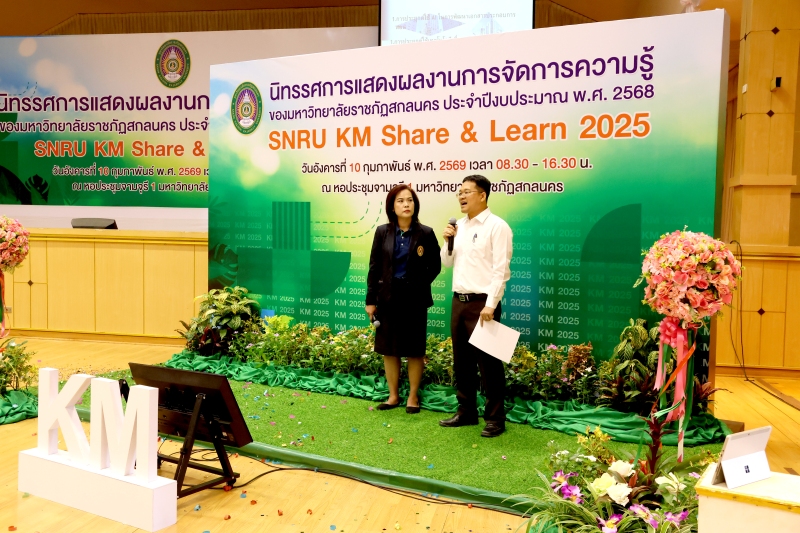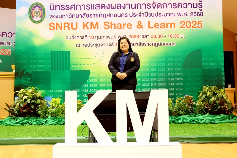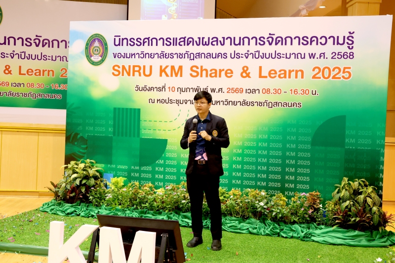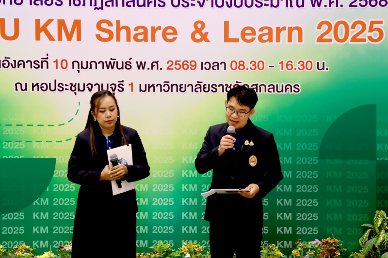 วันอังคารที่ 10 กุมภาพันธ์ พ.ศ. 2569 มหาวิทยาลัยราชภัฏสกลนคร จัดงานนิทรรศการแสดงผลงานการจัดการความรู้ของมหาวิทยาลัยราชภัฏสกลนคร ประจำปีงบประมาณ พ.ศ. 2568 (SNRU KM share & learn 2025) ณ หอประชุมจามจุรี 1 มหาวิทยาลัยราชภัฏสกลนคร