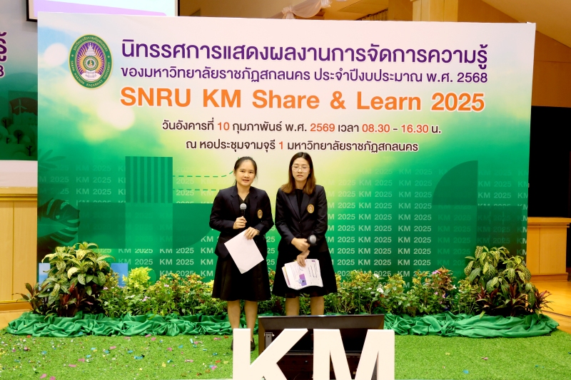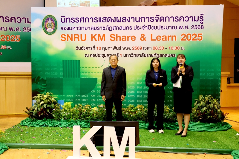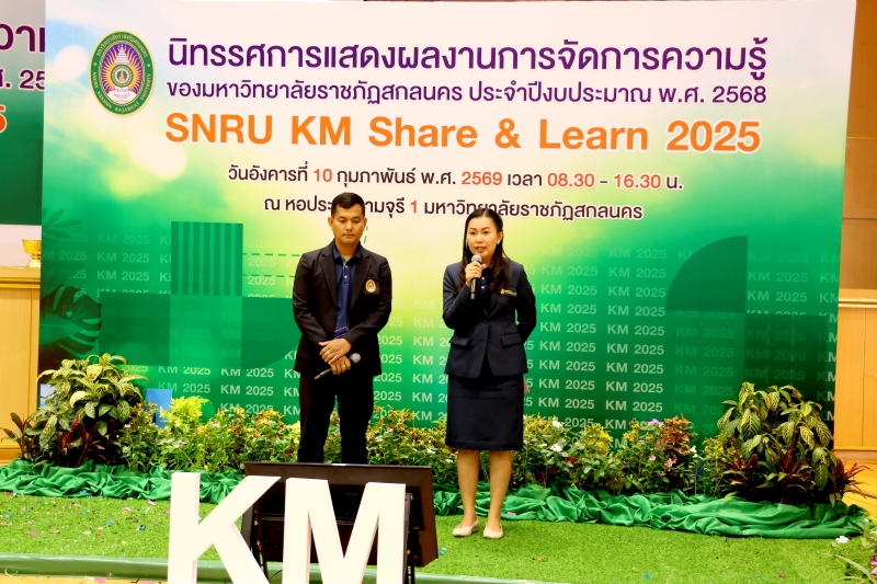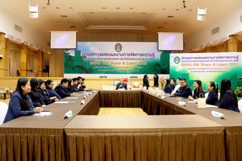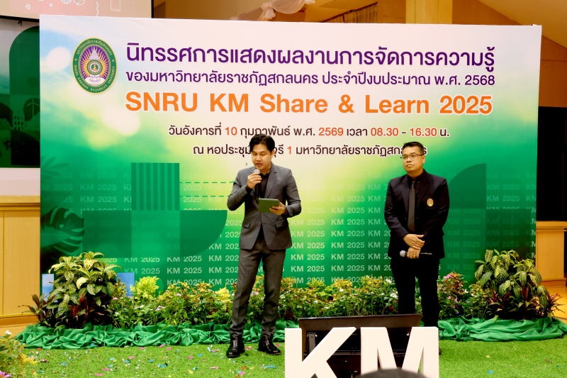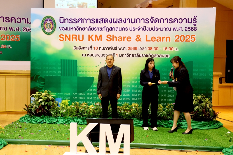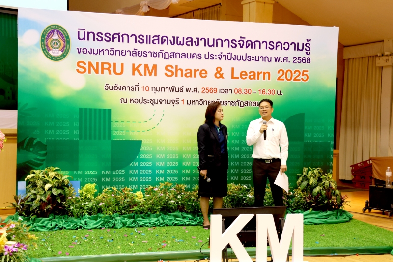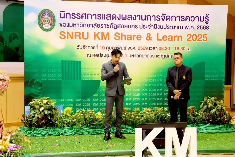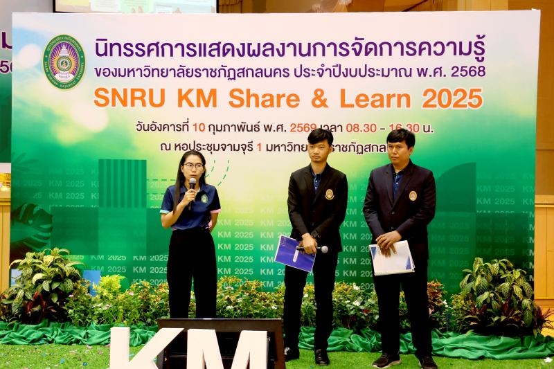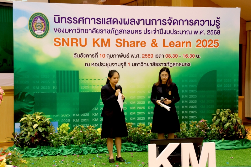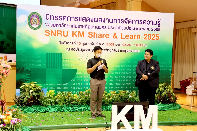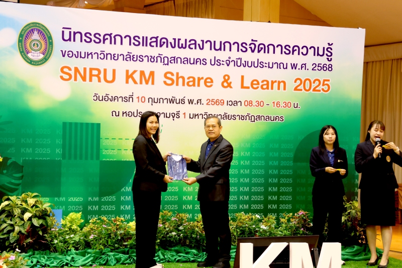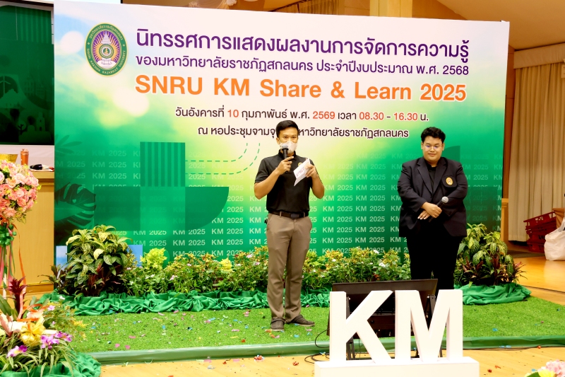 วันอังคารที่ 10 กุมภาพันธ์ พ.ศ. 2569 มหาวิทยาลัยราชภัฏสกลนคร จัดงานนิทรรศการแสดงผลงานการจัดการความรู้ของมหาวิทยาลัยราชภัฏสกลนคร ประจำปีงบประมาณ พ.ศ. 2568 (SNRU KM share & learn 2025) ณ หอประชุมจามจุรี 1 มหาวิทยาลัยราชภัฏสกลนคร
