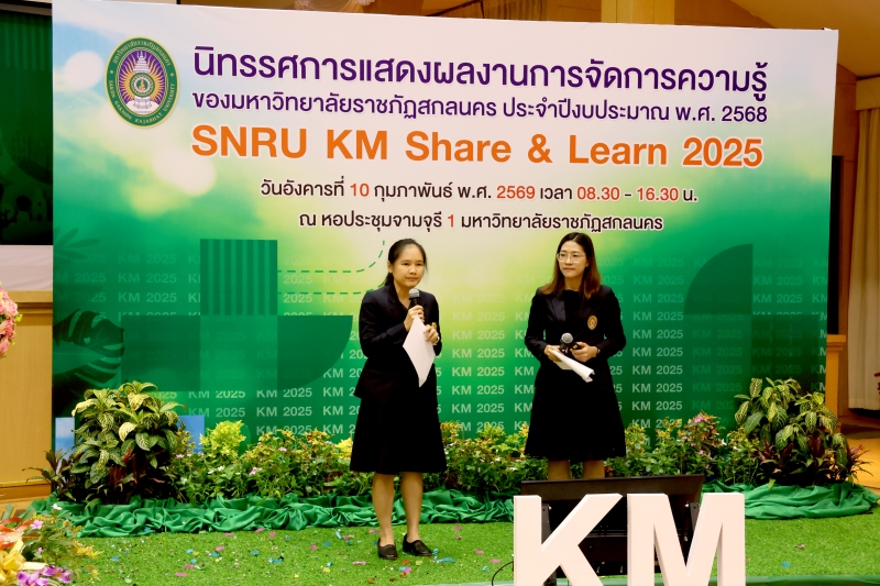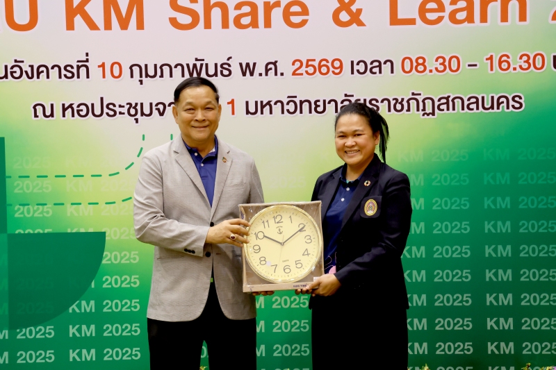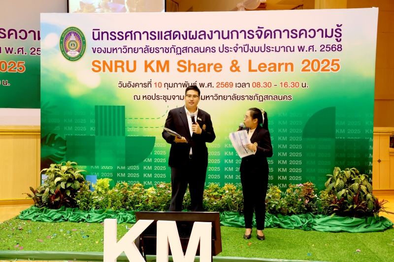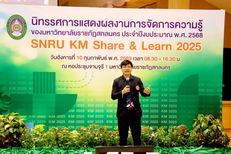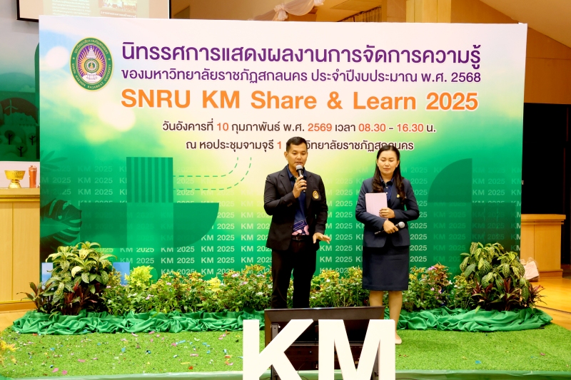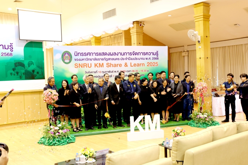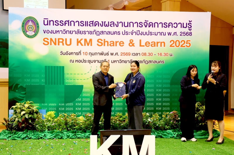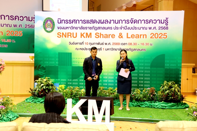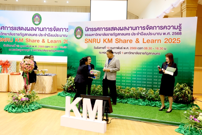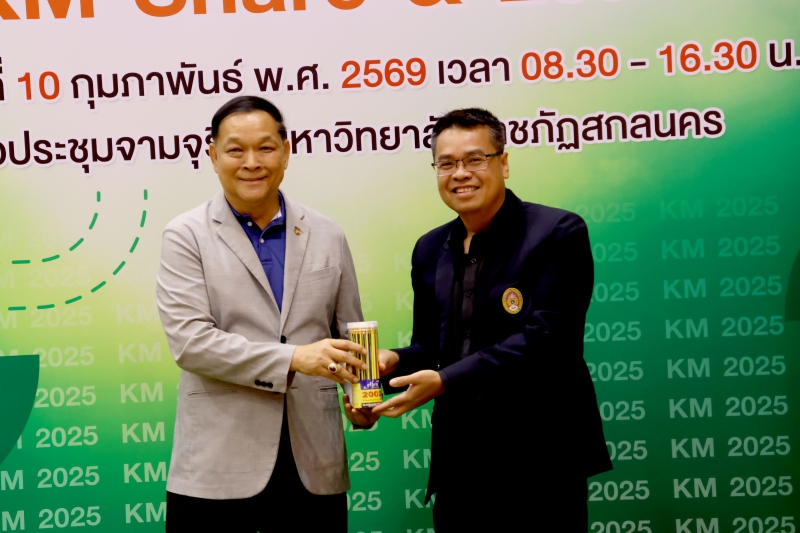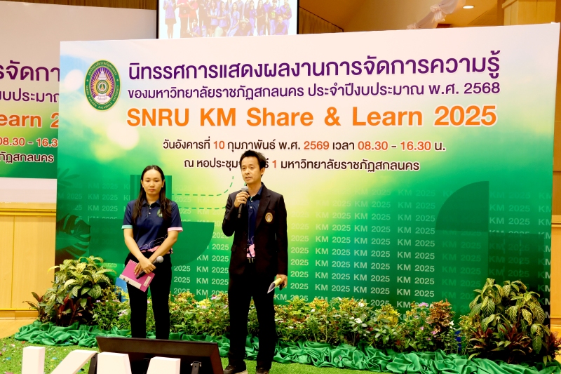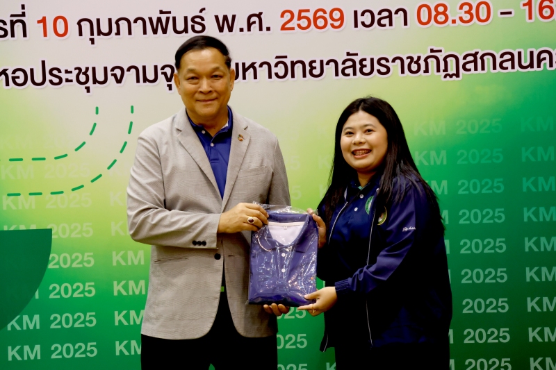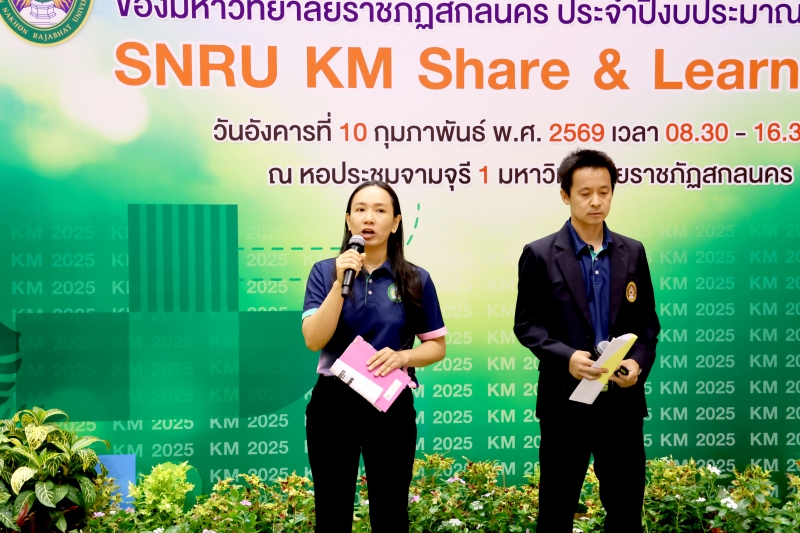 วันอังคารที่ 10 กุมภาพันธ์ พ.ศ. 2569 มหาวิทยาลัยราชภัฏสกลนคร จัดงานนิทรรศการแสดงผลงานการจัดการความรู้ของมหาวิทยาลัยราชภัฏสกลนคร ประจำปีงบประมาณ พ.ศ. 2568 (SNRU KM share & learn 2025) ณ หอประชุมจามจุรี 1 มหาวิทยาลัยราชภัฏสกลนคร