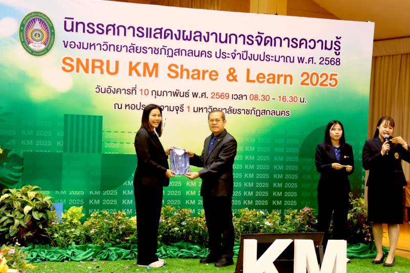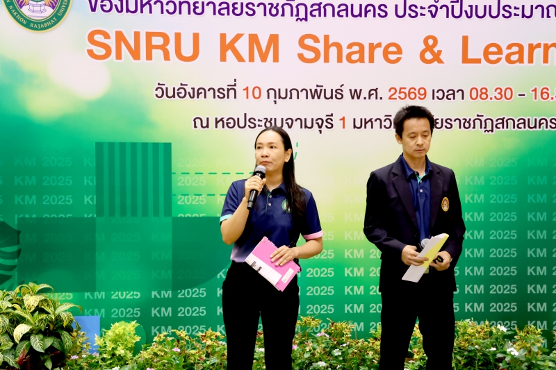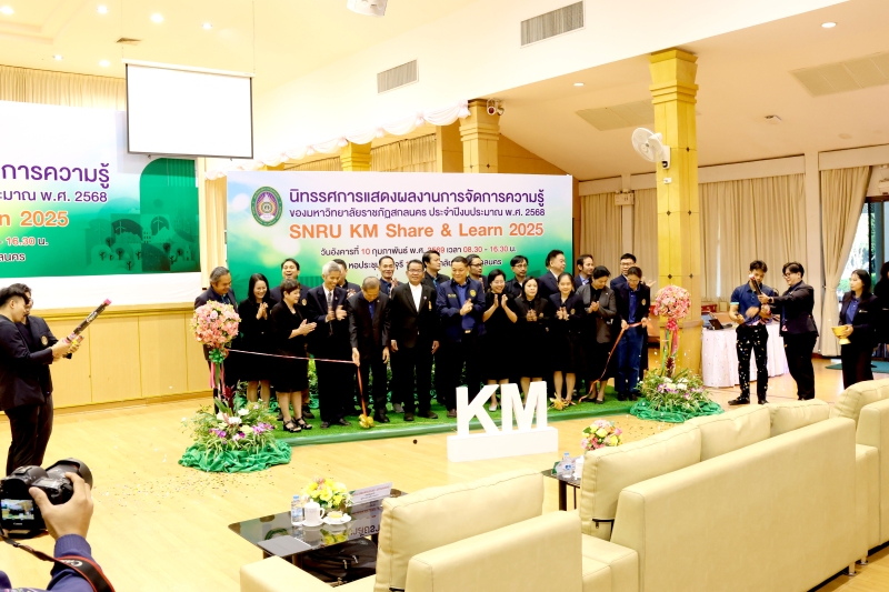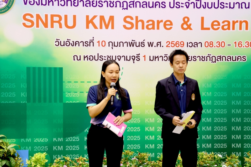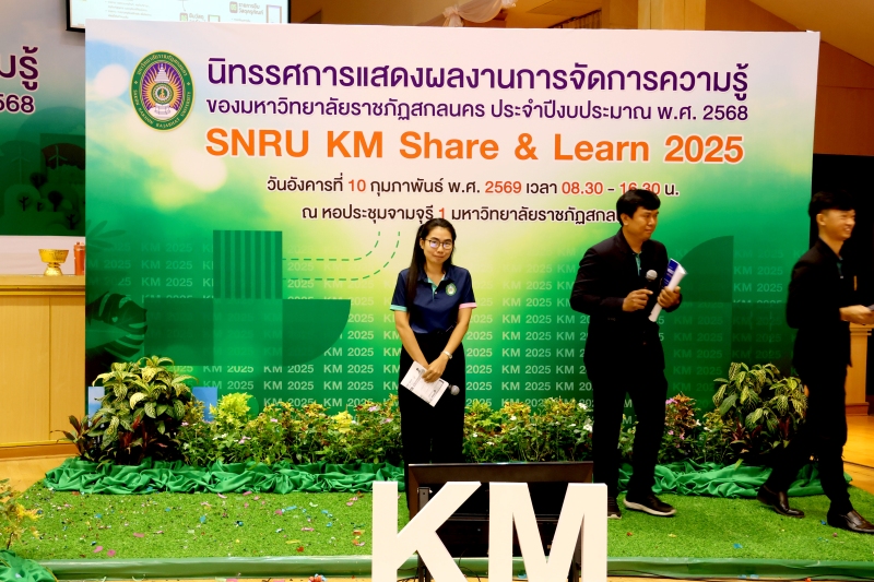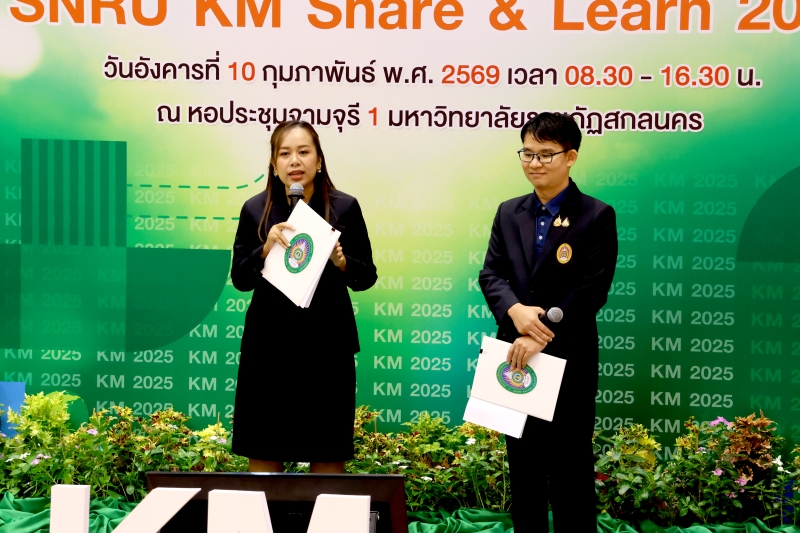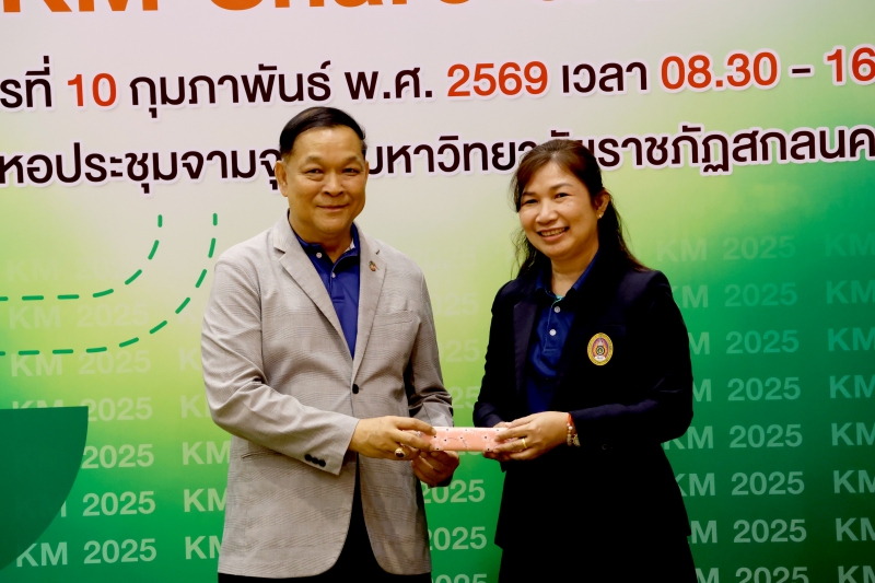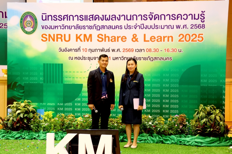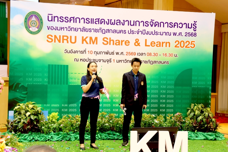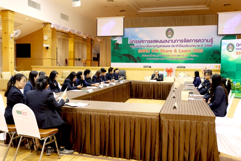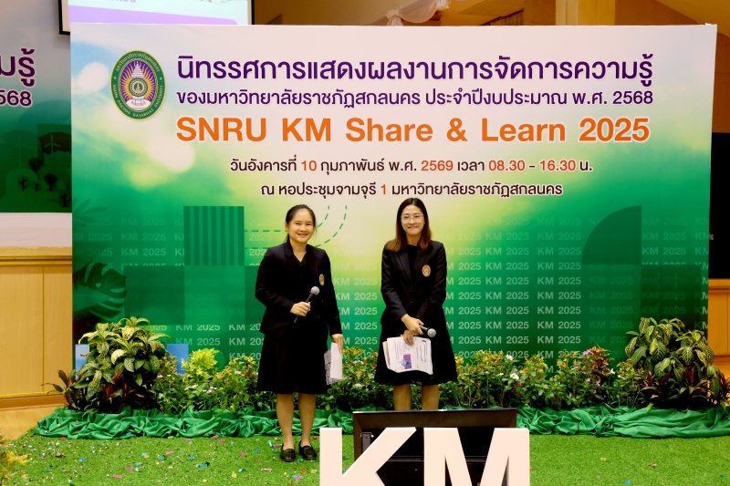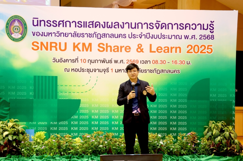 วันอังคารที่ 10 กุมภาพันธ์ พ.ศ. 2569 มหาวิทยาลัยราชภัฏสกลนคร จัดงานนิทรรศการแสดงผลงานการจัดการความรู้ของมหาวิทยาลัยราชภัฏสกลนคร ประจำปีงบประมาณ พ.ศ. 2568 (SNRU KM share & learn 2025) ณ หอประชุมจามจุรี 1 มหาวิทยาลัยราชภัฏสกลนคร