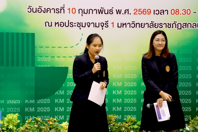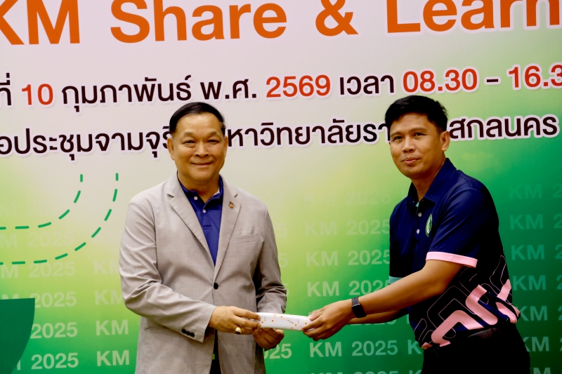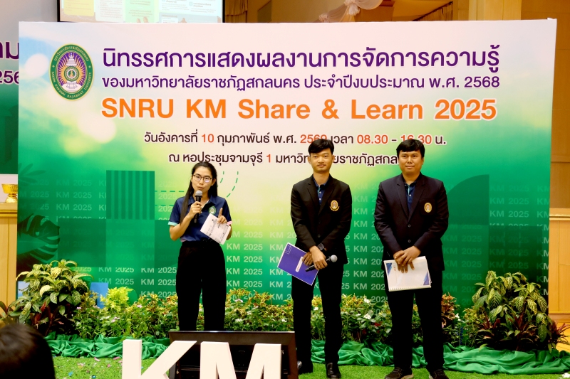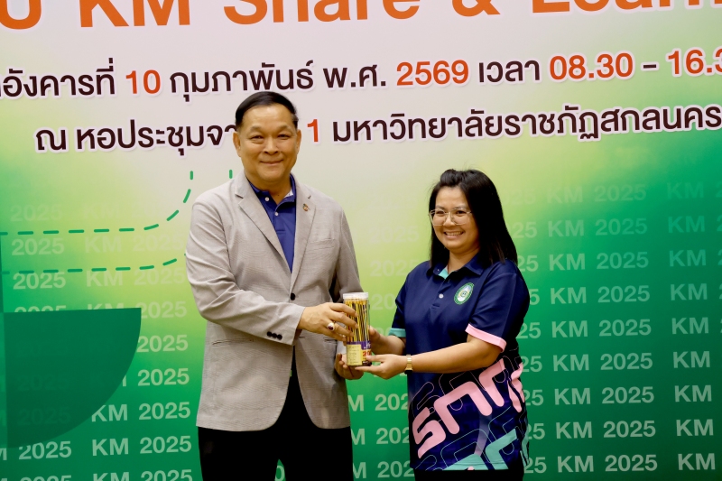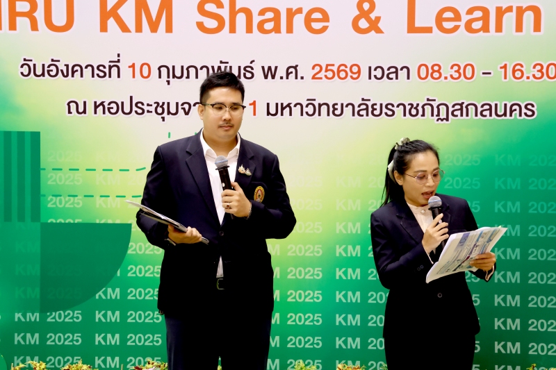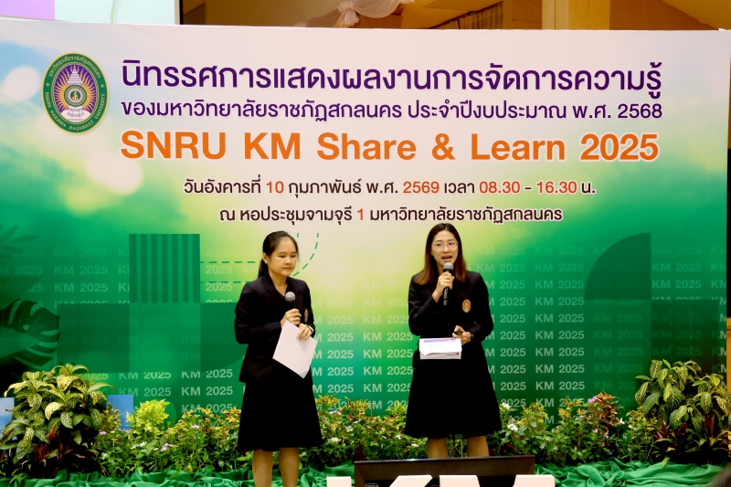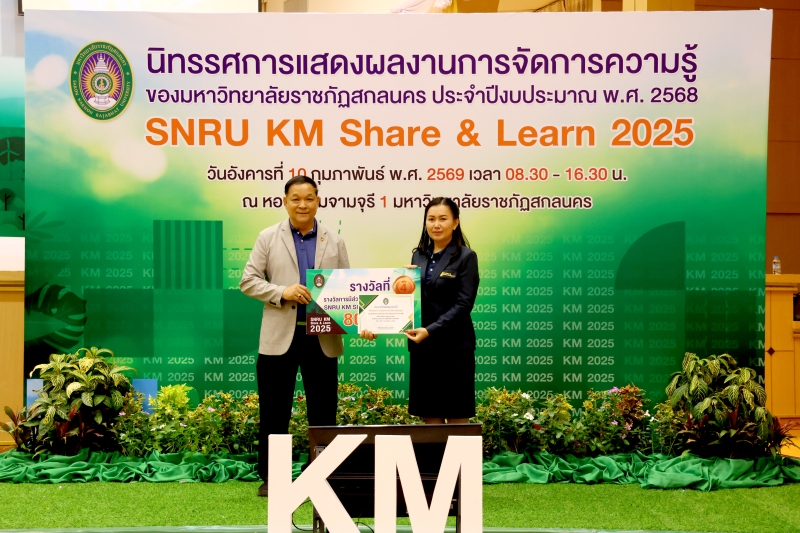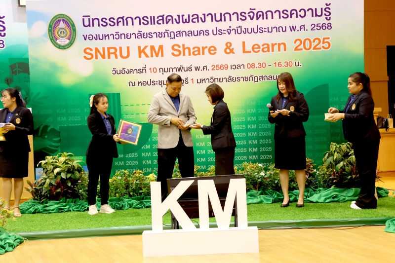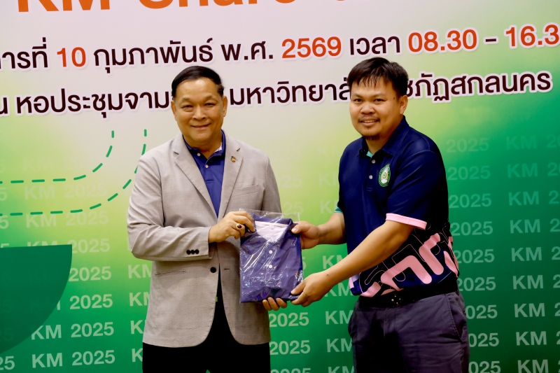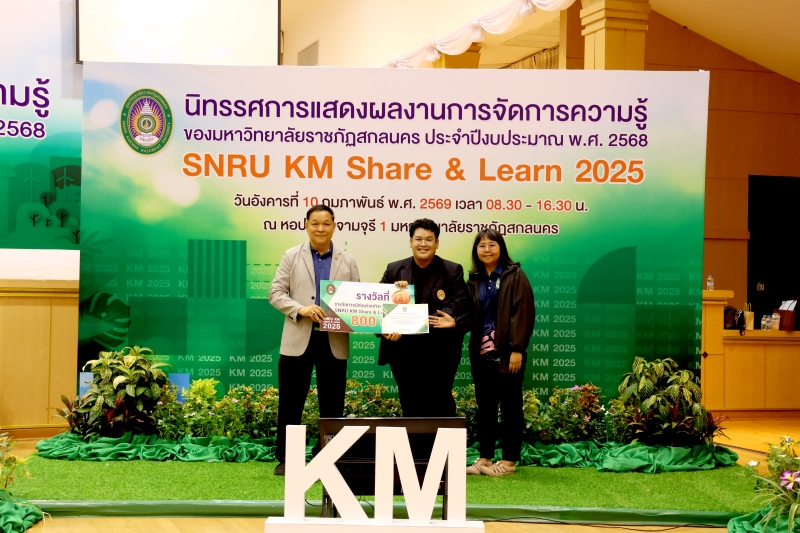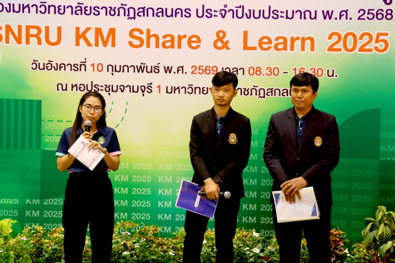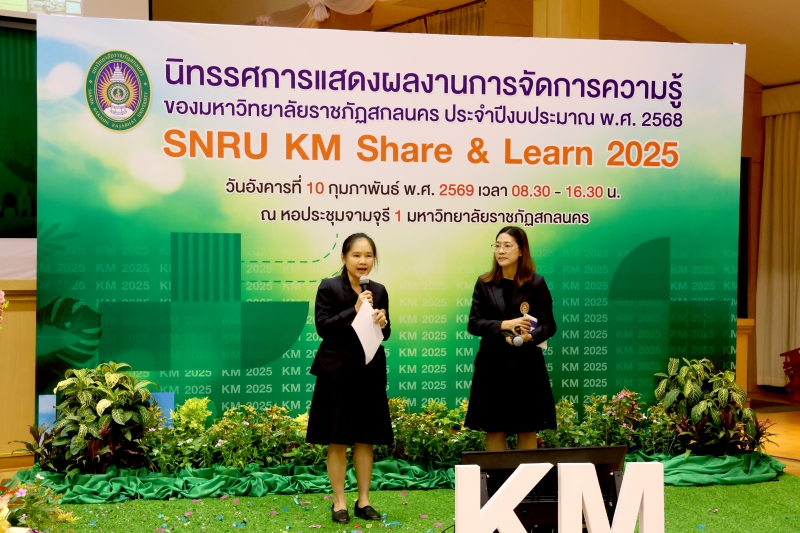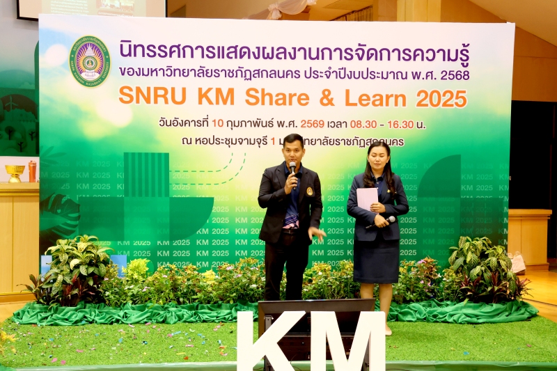 วันอังคารที่ 10 กุมภาพันธ์ พ.ศ. 2569 มหาวิทยาลัยราชภัฏสกลนคร จัดงานนิทรรศการแสดงผลงานการจัดการความรู้ของมหาวิทยาลัยราชภัฏสกลนคร ประจำปีงบประมาณ พ.ศ. 2568 (SNRU KM share & learn 2025) ณ หอประชุมจามจุรี 1 มหาวิทยาลัยราชภัฏสกลนคร