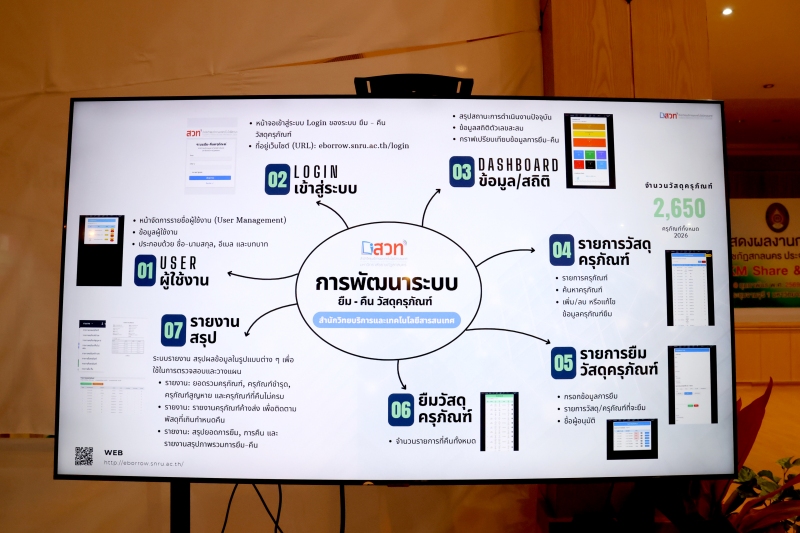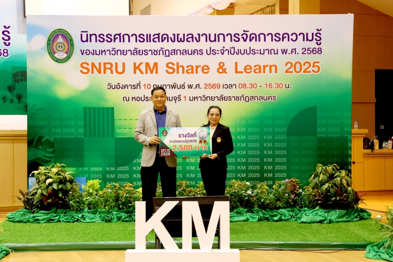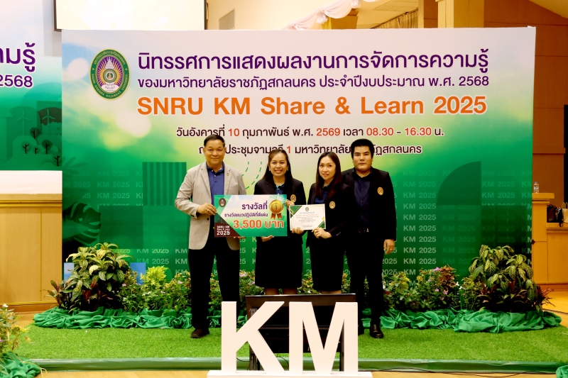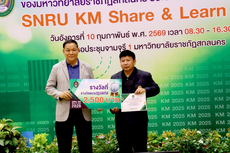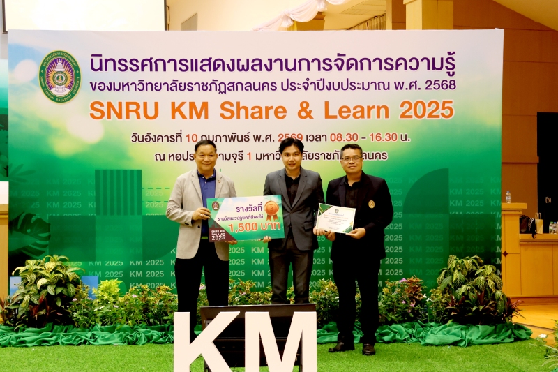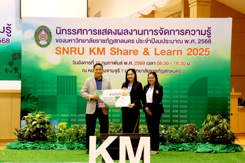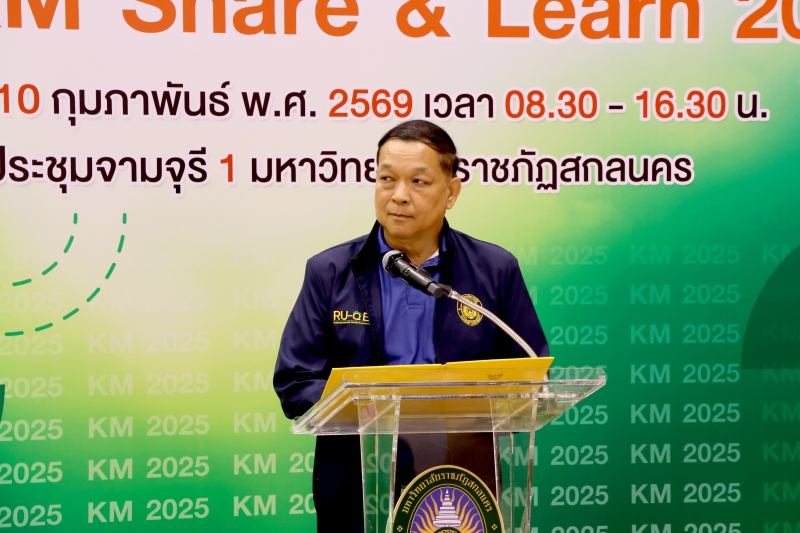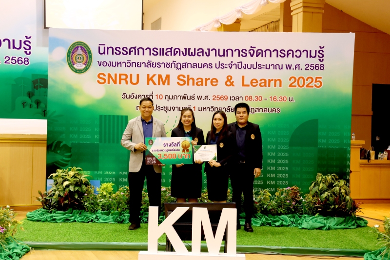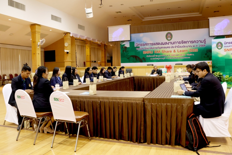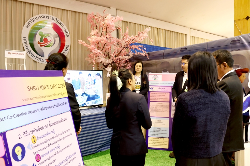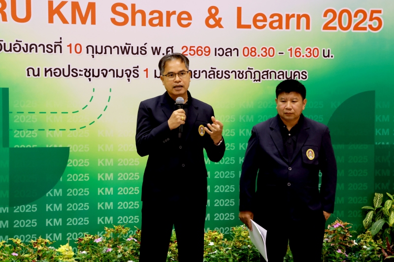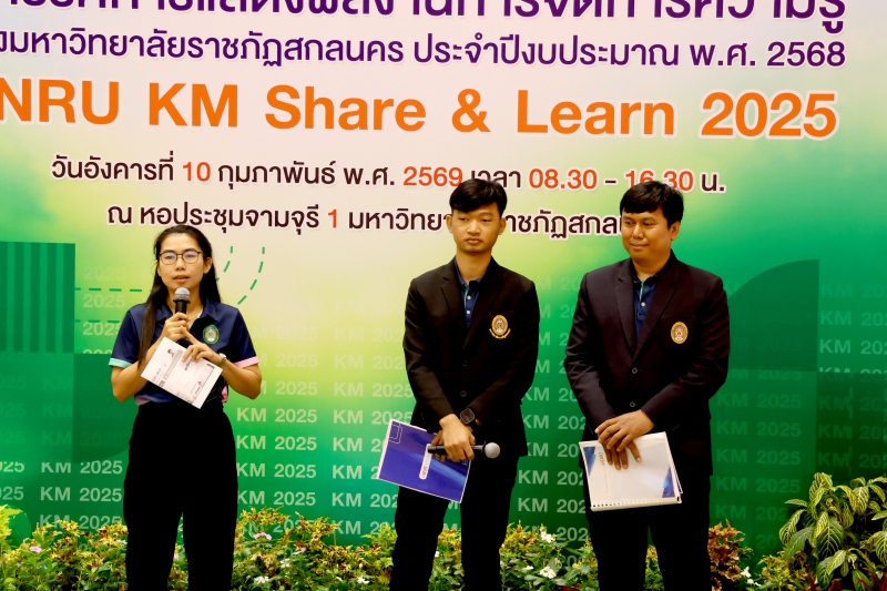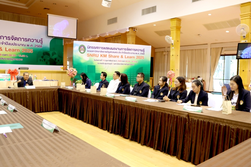 วันอังคารที่ 10 กุมภาพันธ์ พ.ศ. 2569 มหาวิทยาลัยราชภัฏสกลนคร จัดงานนิทรรศการแสดงผลงานการจัดการความรู้ของมหาวิทยาลัยราชภัฏสกลนคร ประจำปีงบประมาณ พ.ศ. 2568 (SNRU KM share & learn 2025) ณ หอประชุมจามจุรี 1 มหาวิทยาลัยราชภัฏสกลนคร