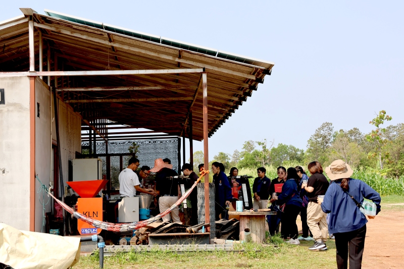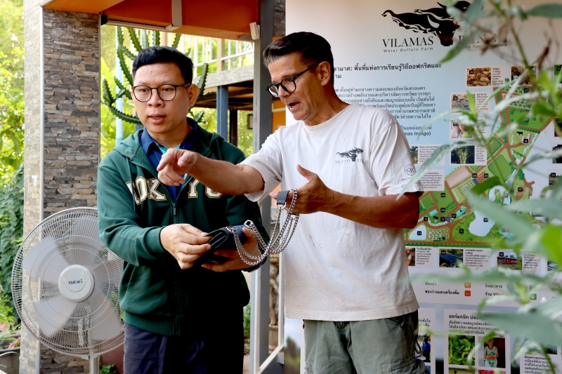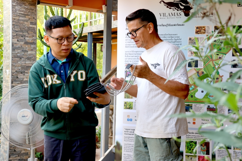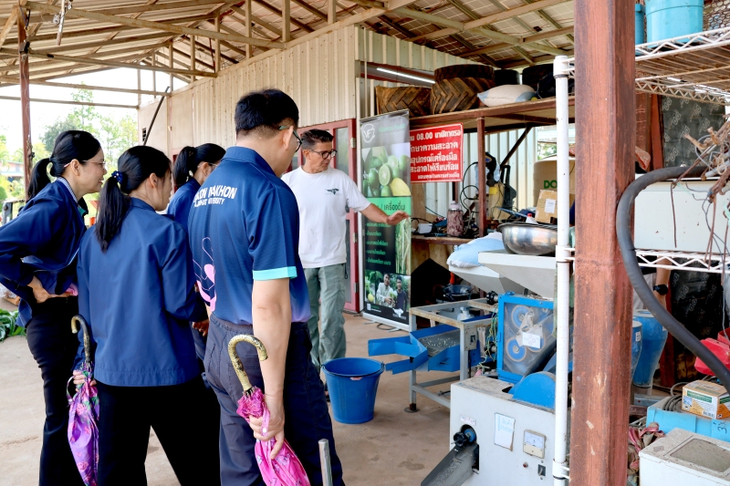 ณ ศูนย์การเรียนรู้ด้านคราม และไร่และสวนวิลามาศ (Vilamas Ranch) ตำบลสว่าง อำเภอพรรณานิคม จังหวัดสกลนคร โดยมีวัตถุประสงค์เพื่อการแลกเปลี่ยนเรียนรู้เกษตรอินทรีย์ผสมผสานแบบยั่งยืนที่ใช้พลังงานแสงอาทิตย์แนวทางการพัฒนาเกษตรกรรมเชิงสร้างสรรค์ และแนวคิดการบริหารจัดการฟาร์ม ณ ไร่และสวนวิลามาศ (Vilamas Ranch) และติดตามความก้าวหน้าศูนย์การเรียนรู้คราม “วิชชาลัยดอนกอย วิถีแห่งการพัฒนาที่ยั่งยืน”