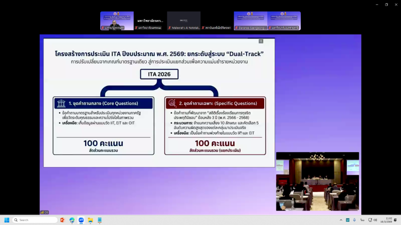 เรื่อง การชี้แจงหลักเกณฑ์การประเมินคุณธรรมและความโปร่งใส (Integrity and Transparency Assessment: ITA) ในการดำเนินงานของหน่วยงานในสังกัดกระทรวงการอุดมศึกษา วิทยาศาสตร์ วิจัยและนวัตกรรม (กระทรวง อว.) และหน่วยงานภาครัฐ ประเภทสถาบันอุดมศึกษา ประจำปีงบประมาณ พ.ศ. 2569 ผ่านระบบประชุมทางไกลออนไลน์ (Zoom Cloud Meetings) ณ ห้องประชุมสรัสจันทร ชั้น 2 อาคาร 10 มหาวิทยาลัยราชภัฏสกลนคร จัดโดย ศูนย์ปฏิบัติการต่อต้านการทุจริต กระทรวงการอุดมศึกษา วิทยาศาสตร์ วิจัยและนวัตกรรม