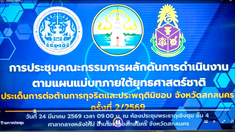 โดยมีนายวีรรัตน์ ธีรมิตร รองผู้ว่าราชการจังหวัดสกลนคร เป็นประธาน โดย นางสาวมญชุ์ญาณิศ พงศ์เพชรดิถ ผู้อำนวยการสำนักงาน ป.ป.ช.ประจำจังหวัดสกลนคร รายงานปฏิทินการประเมินคุณธรรมและความโปร่งใสในการดำเนินงาน ของหน่วยงานภาครัฐ หรือ ITA จังหวัดสกลนคร ประจำปีงบประมาณ พ.ศ. 2569 และความก้าวหน้าการลงทะเบียนเข้าสู่ระบบ ITAS หน่วยงานภาครัฐ ภาคเอกชน และภาคประชาชน จังหวัดสกลนคร ที่ได้รับการสนับสนุนงบประมาณจากกองทุน ป.ป.ช.ประจำปี 2569 การจัดประกวดผลงานนวัตกรรมการใช้หลักสูตรต้านทุจริตศึกษาที่เป็นเลิศ (Best Practice) จังหวัดสกลนคร สรุปผลการดำเนินงานของชมรม STRONG – จิตพอเพียงต้านทุจริตจังหวัดสกลนคร และสรุปแผนปฏิบัติการขับเคลื่อนในระดับจังหวัด ประจำปี 2569 ในประเด็นการต่อต้านการทุจริต และประพฤติมิชอบของจังหวัดสกลนคร ภายใต้การดำเนินงานของคณะกรรมการฯ โดยมีวัตถุประสงค์เพื่อให้การดำเนินการผลักดันการดำเนินงานตามแผนแม่บทภายใต้ยุทธศาสตร์ชาติ ประเด็นการต่อต้านการทุจริตและประพฤติมิชอบจังหวัดสกลนคร ให้มีประสิทธิภาพและบรรลุผลสำเร็จตามเป้าหมาย ของแผนแม่บทภายใต้ยุทธศาสตร์ชาติฯ ตลอดถึงการกำกับติดตาม ผลการดำเนินงานตามแผนปฏิบัติการขับเคลื่อน ระดับจังหวัด ฯลฯ