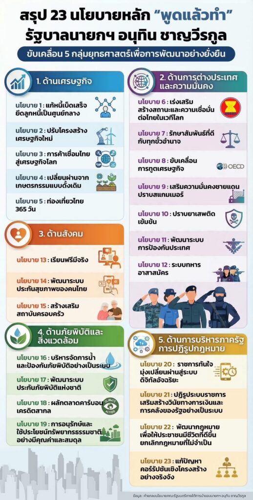 คำแถลงนโยบายของคณะรัฐมนตรี นายอนุทิน ชาญวีรกูล นายกรัฐมนตรี แถลงต่อรัฐสภา