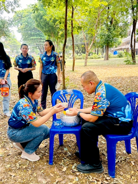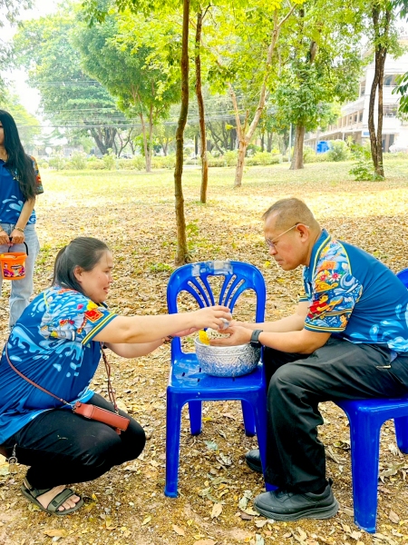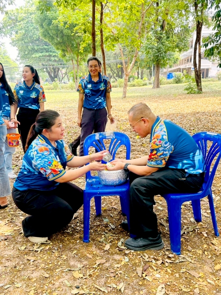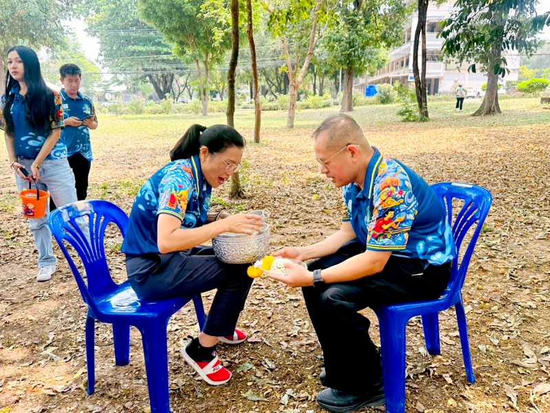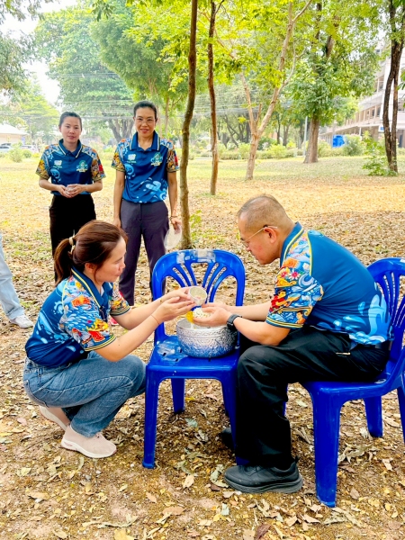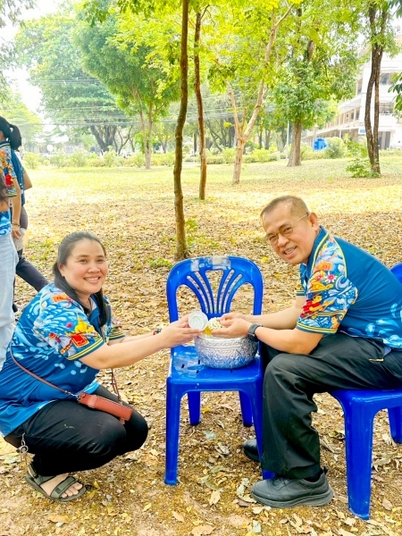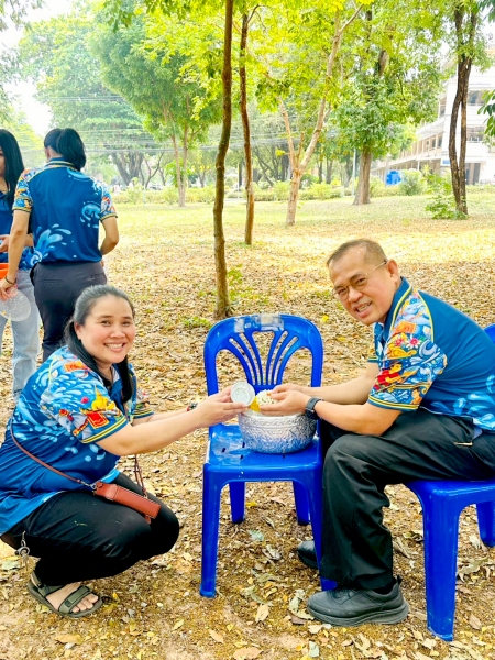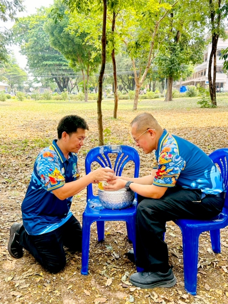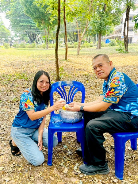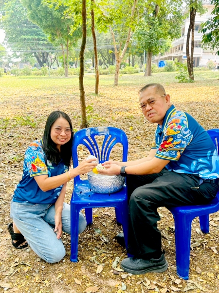 พร้อมร่วมรดน้ำขอพรจาก ศาสตราจารย์ ดร.ทศวรรษ สีตะวัน รองอธิการบดี นายเกษม บุตรดี ผู้อำนวยการสำนักงานอธิการบดี และนางอมรรัตน์ ตุ่นกลิ่น รักษาการในตำแหน่งผู้อำนวยการกองนโยบายและแผน เนื่องในวันสงกรานต์ ประจำปี 2569