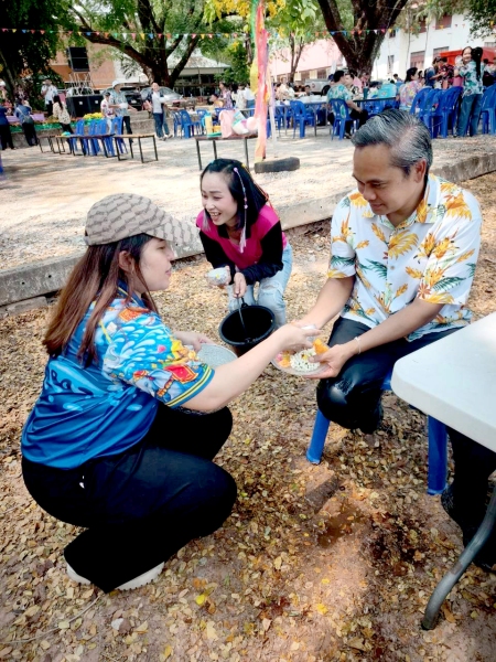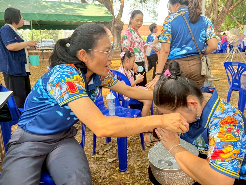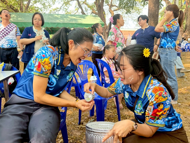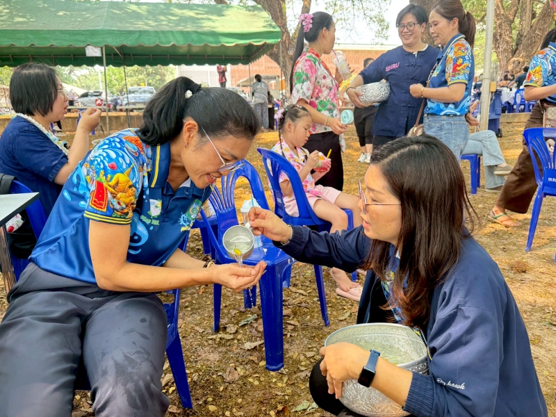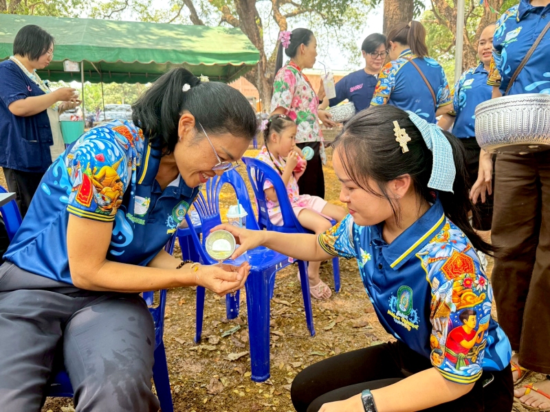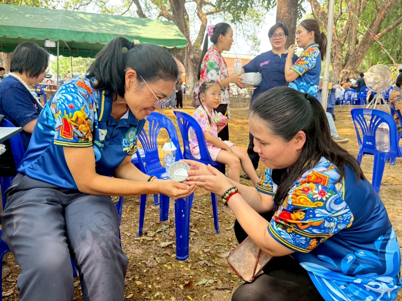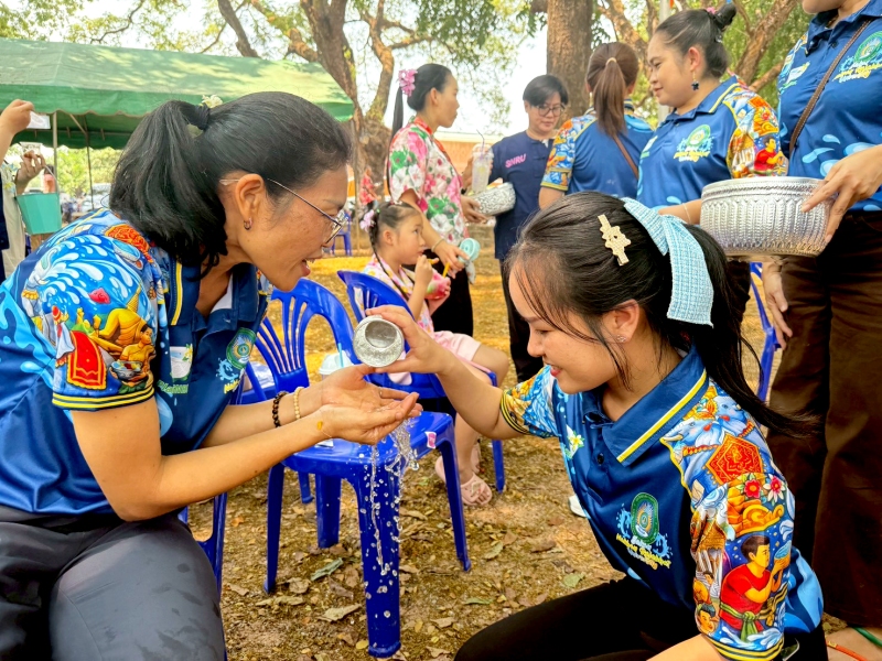 พร้อมร่วมรดน้ำขอพรจาก ศาสตราจารย์ ดร.ทศวรรษ สีตะวัน รองอธิการบดี นายเกษม บุตรดี ผู้อำนวยการสำนักงานอธิการบดี และนางอมรรัตน์ ตุ่นกลิ่น รักษาการในตำแหน่งผู้อำนวยการกองนโยบายและแผน เนื่องในวันสงกรานต์ ประจำปี 2569
