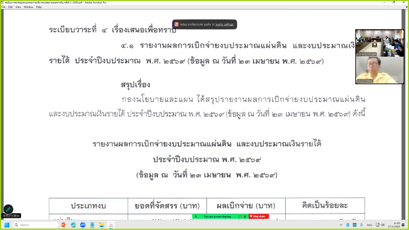 การประชุมคณะกรรมการบริหารงบประมาณและการเงิน ครั้งที่ 2/2569 (27 เมษายน 2569)